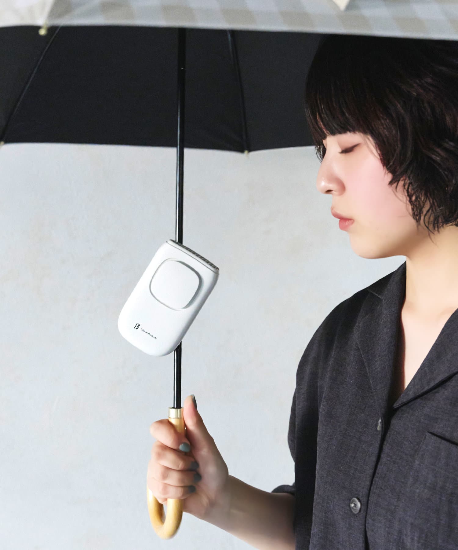 ●日傘、リュックなどに取り付ければ、アウトドアシーンでの移動も快適に過ごせます。