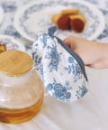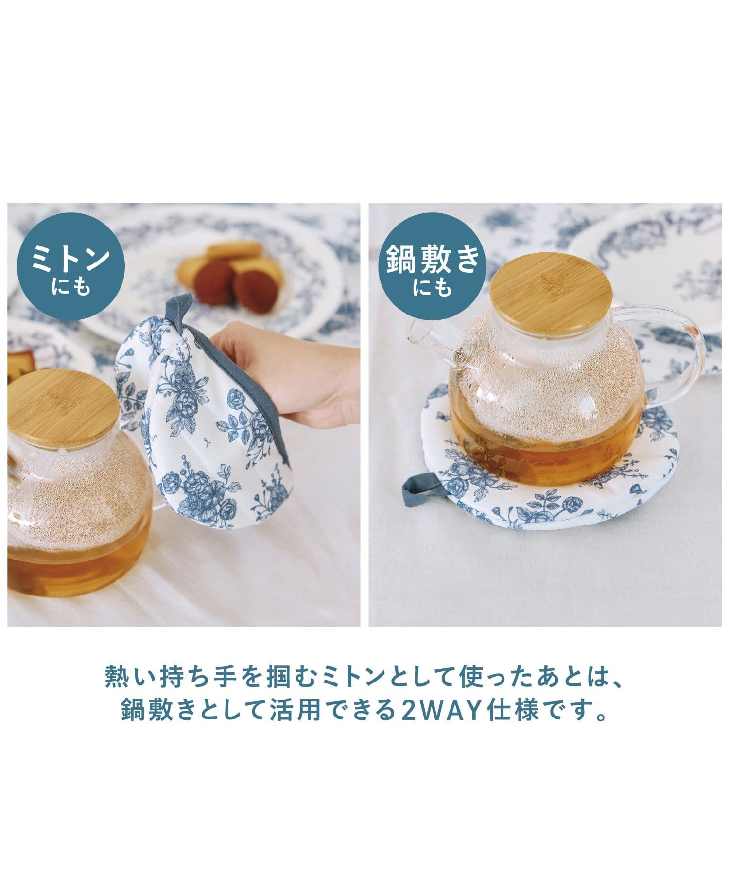 ●爽やかなブルーの花柄が、ティータイムを彩る鍋敷きミトン。