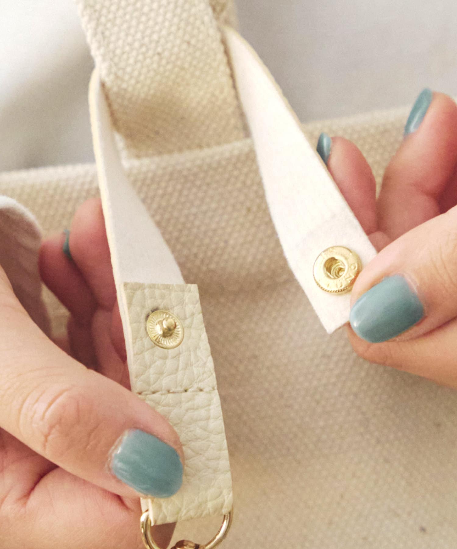 ●バッグの持ち手に付けられるストラップ付きのスリムなメガネケース。