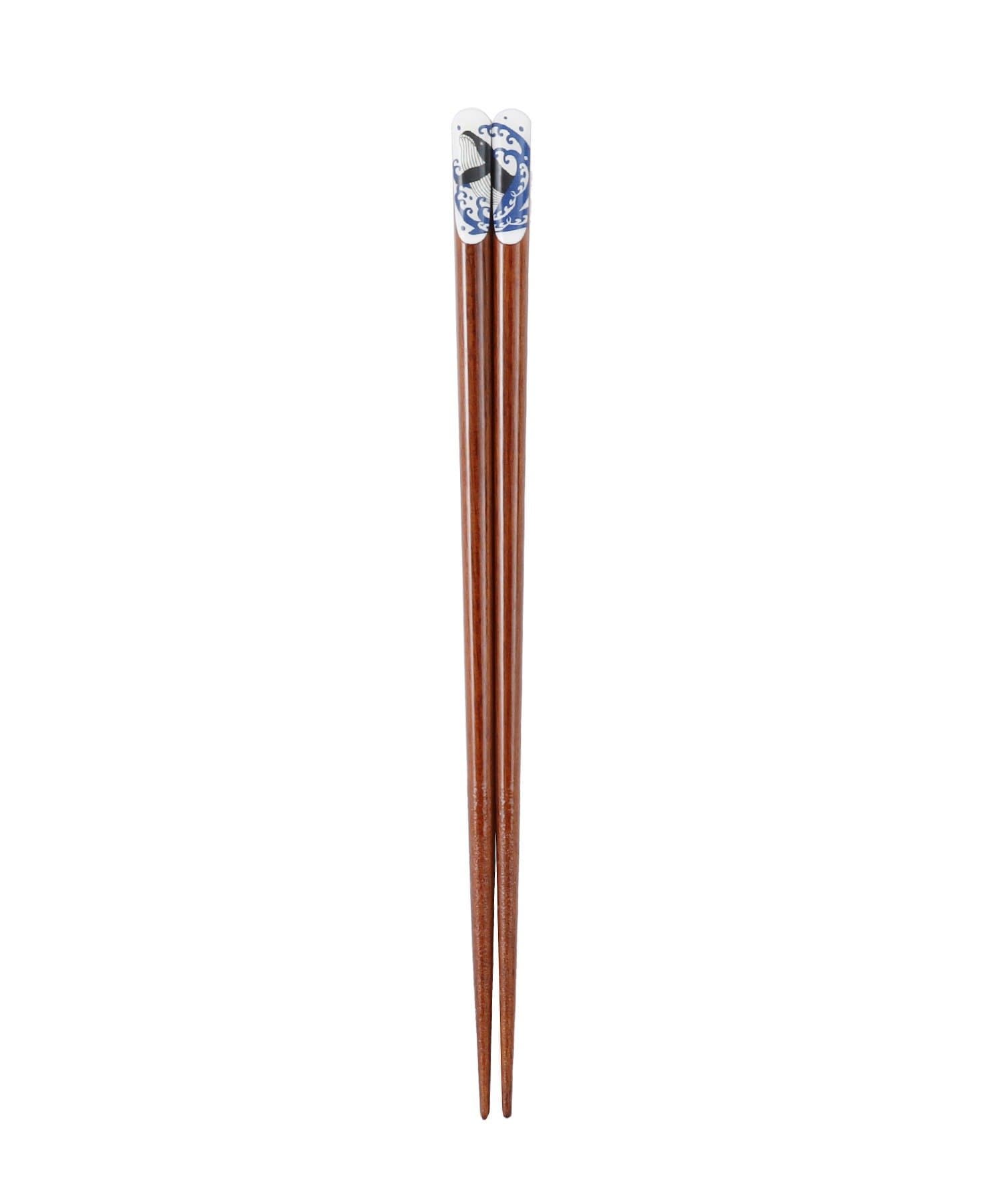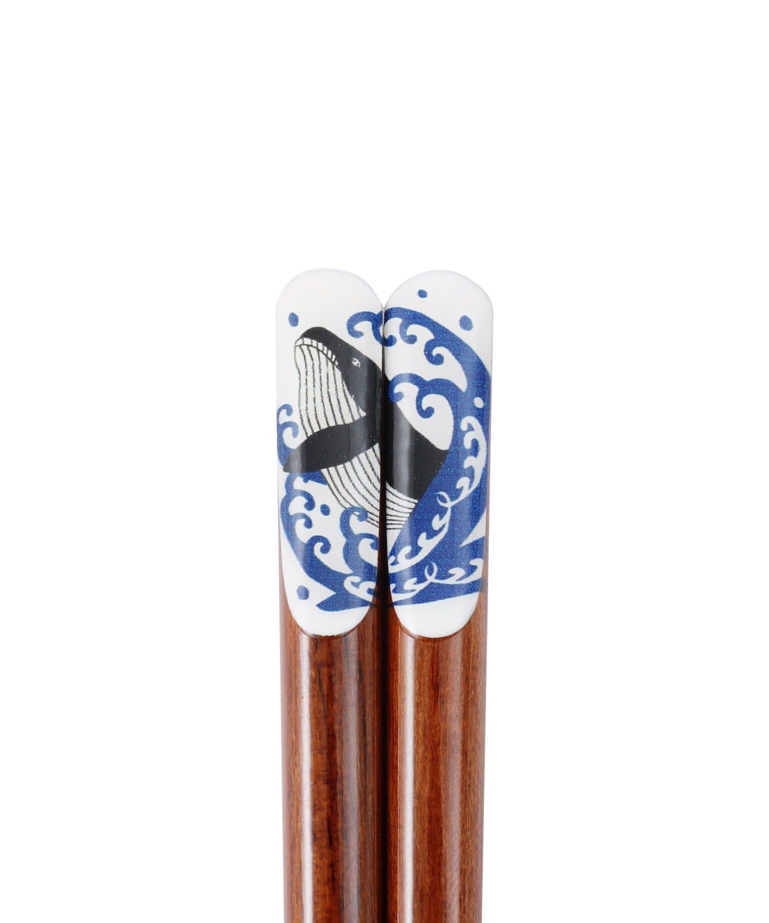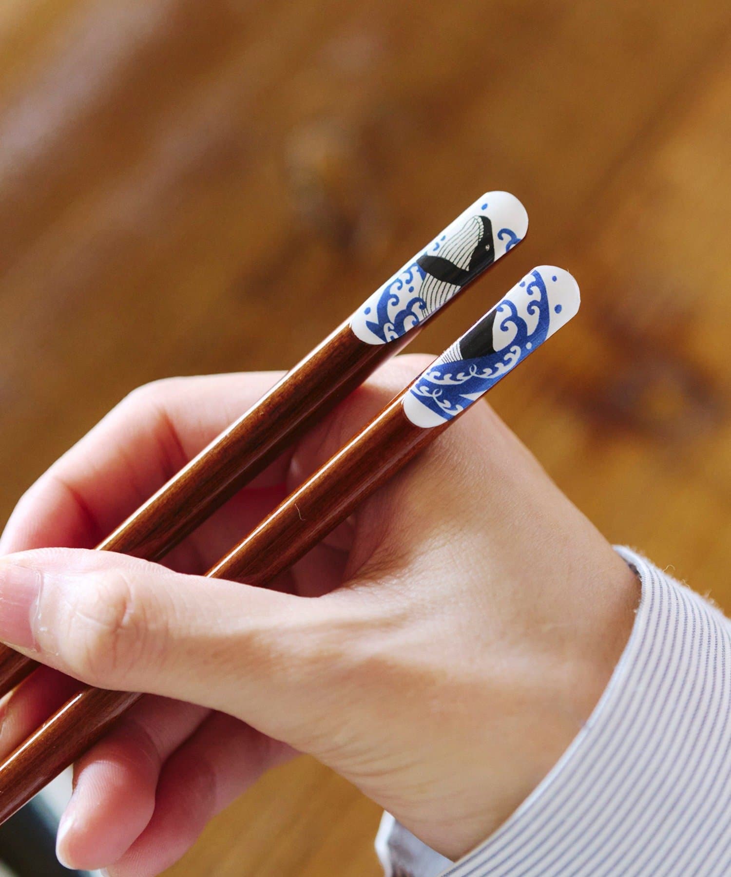 ●持ち手の先にくじらが描かれた、木製のお箸。