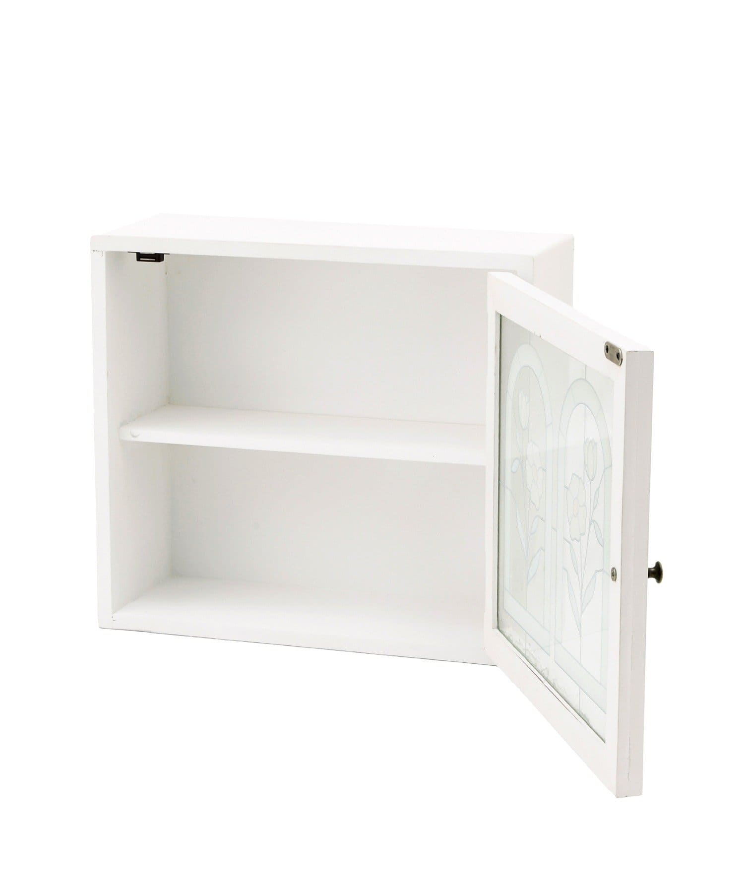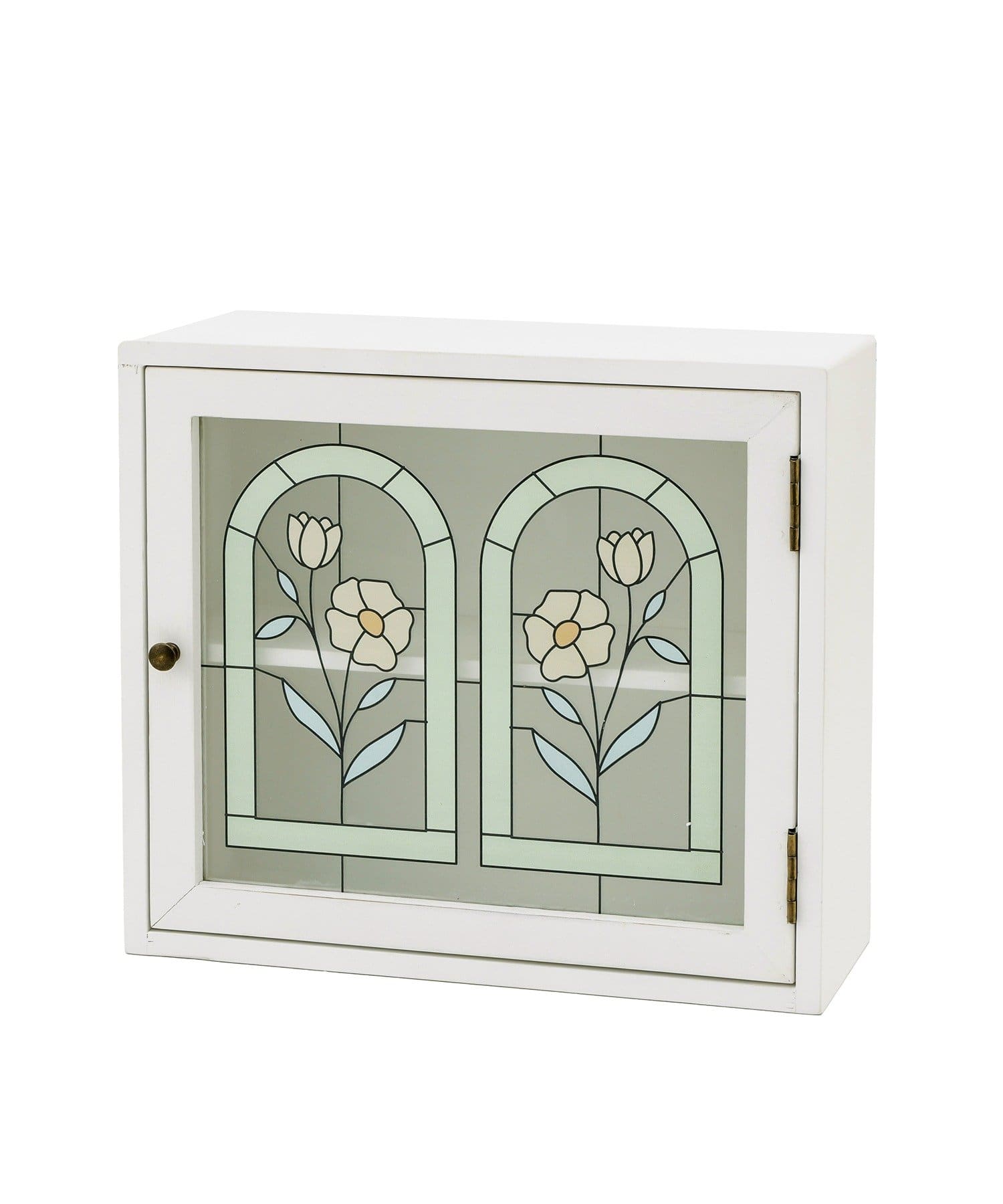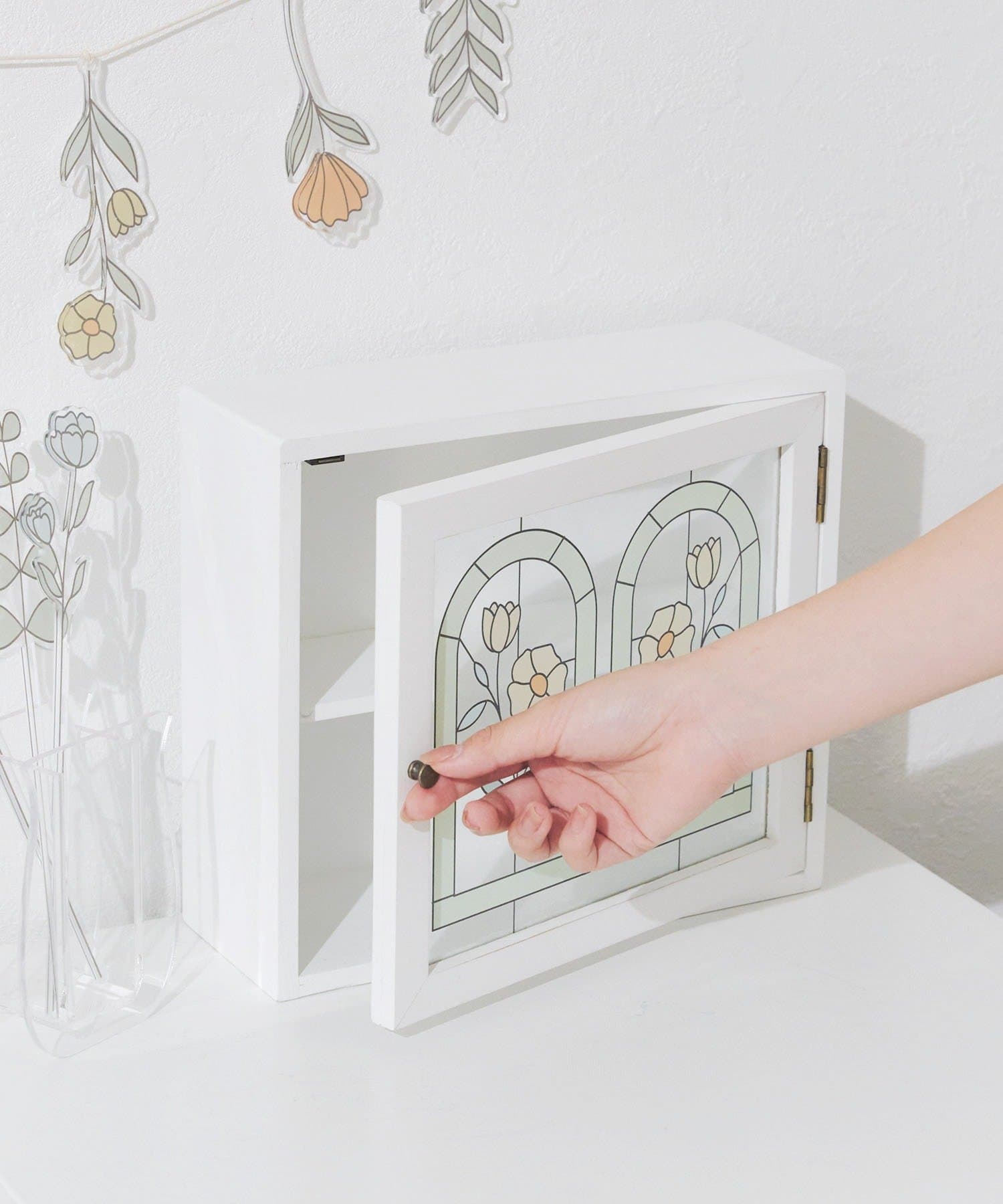 ●くすみカラーのステンドグラス風のお花が可愛いミニキャビネット。