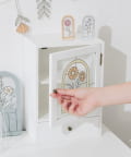 ●戸棚と引き出しに小物や雑貨ををすっきり整理整頓できます。