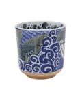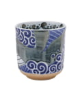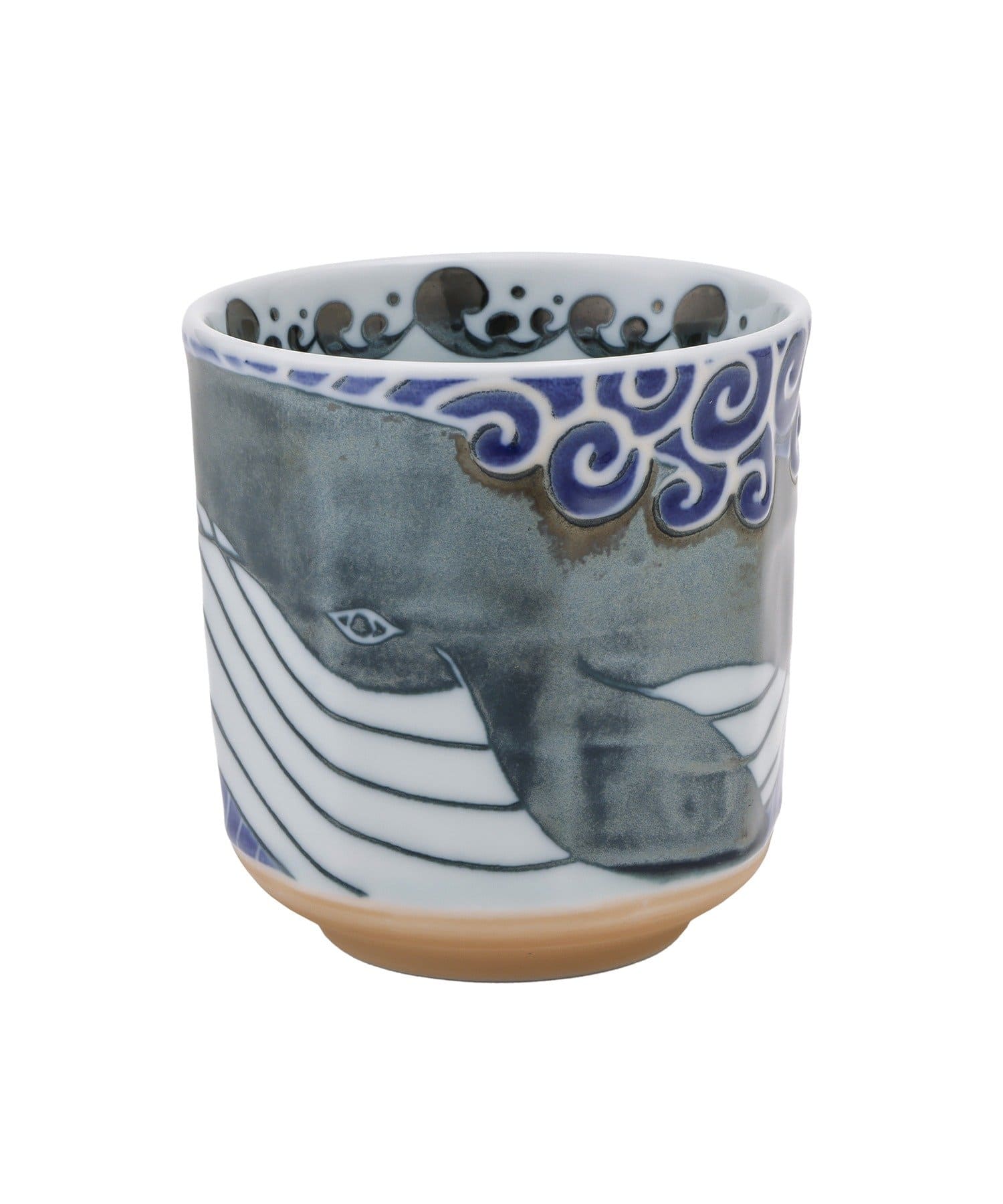 ●藍色の海を泳ぐ豪快で迫力のある、くじらが描かれた湯呑。