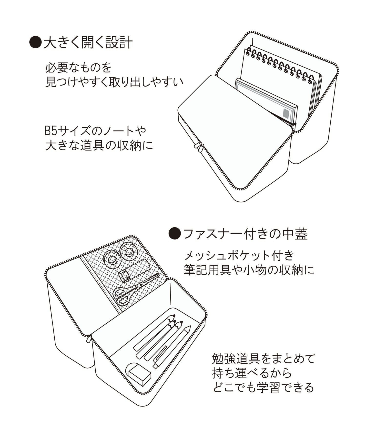 ●お勉強に使う文房具をひとまとめに収納できるバッグ。