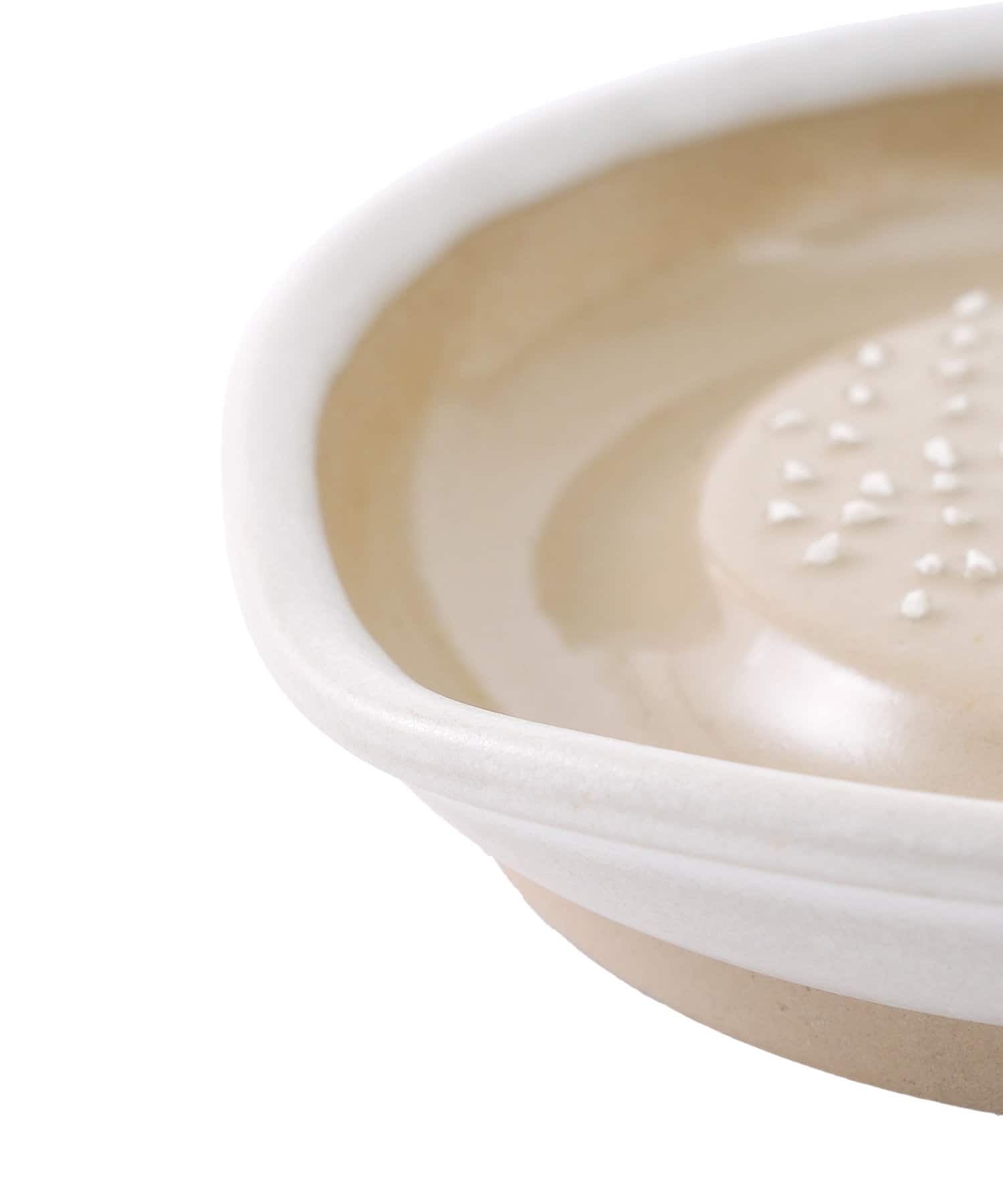 ●切れ味抜群のセラミックの破片が陶器に埋め込まれているので、とても軽い力でおろし料理ができます。
