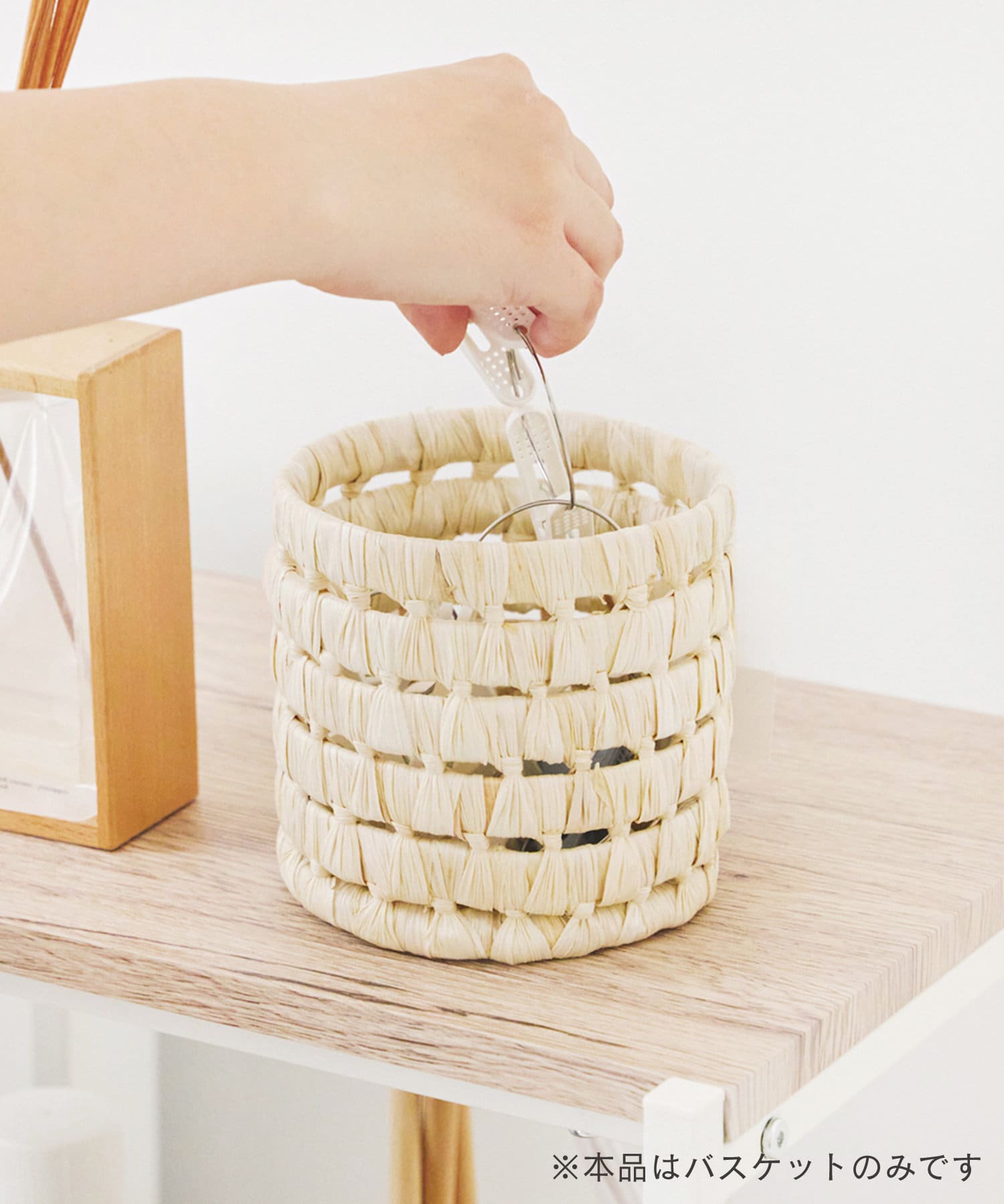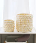 ●自然素材の風合いがインテリアに馴染むラウンドバスケット。