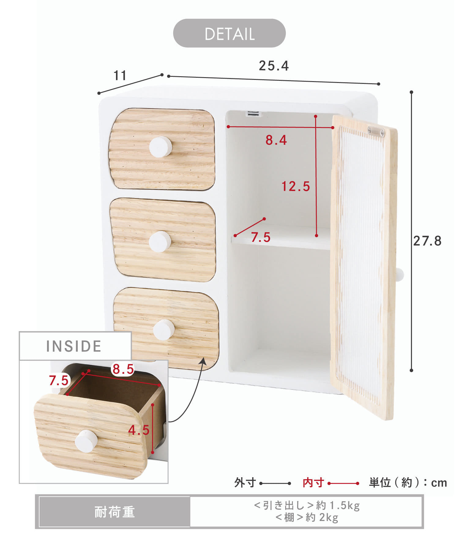 サイズ - 0 約高さ27.8×幅25.4×奥行き11cm <引き出し内寸>約高さ4.5×幅8.5×奥行き7.5cm