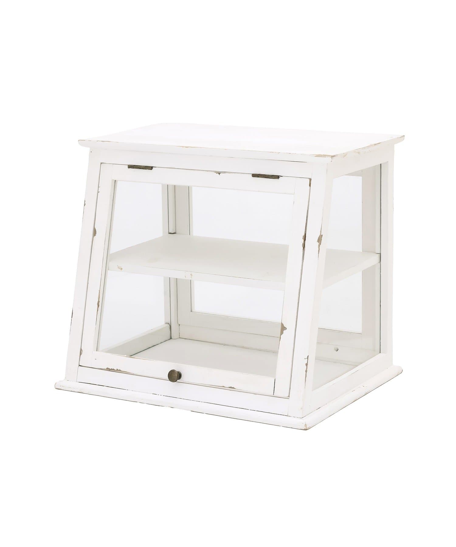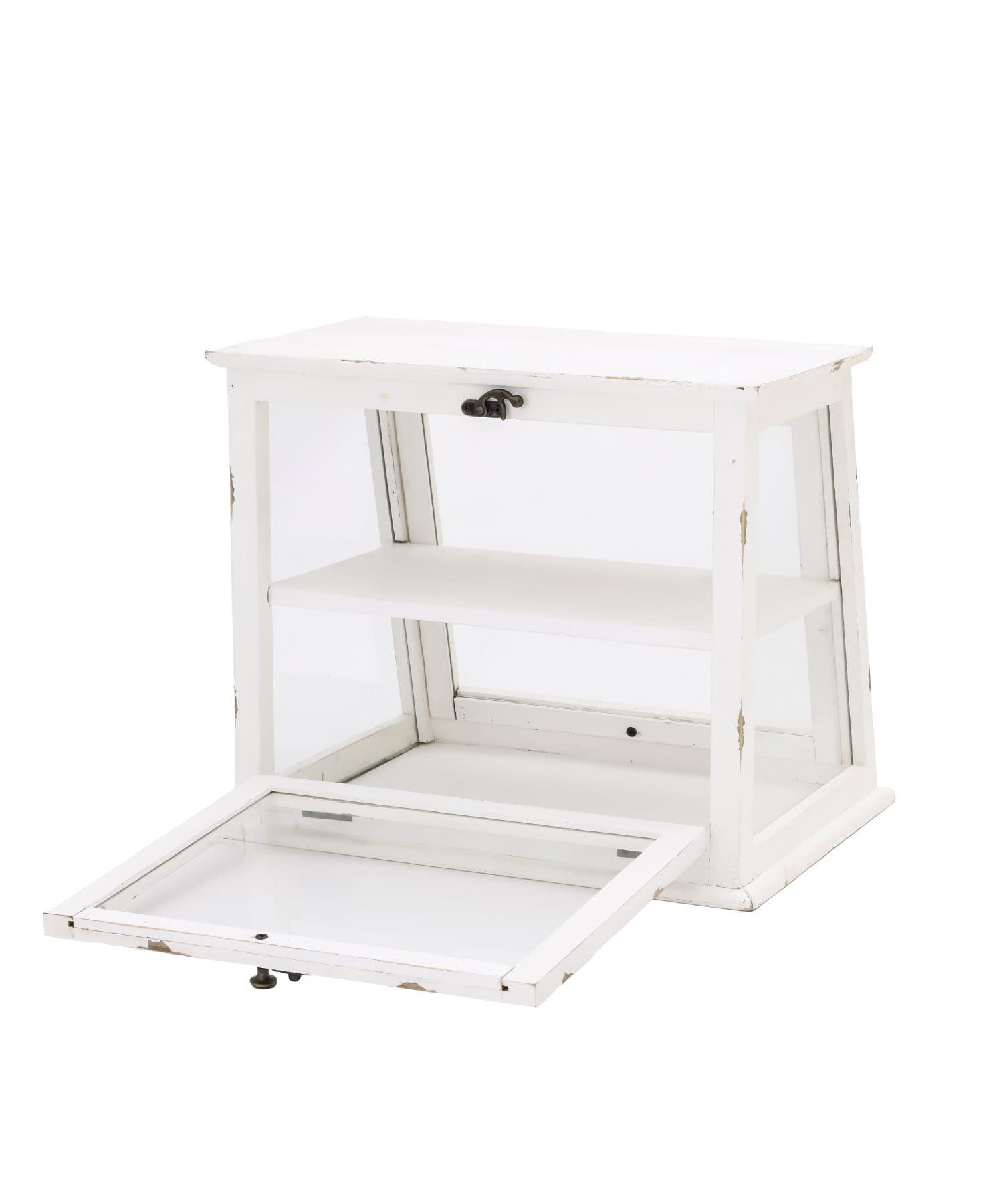 ●シャビーな風合いが魅力の、ホワイト塗装仕上げの木製カウンターキャビネット。
