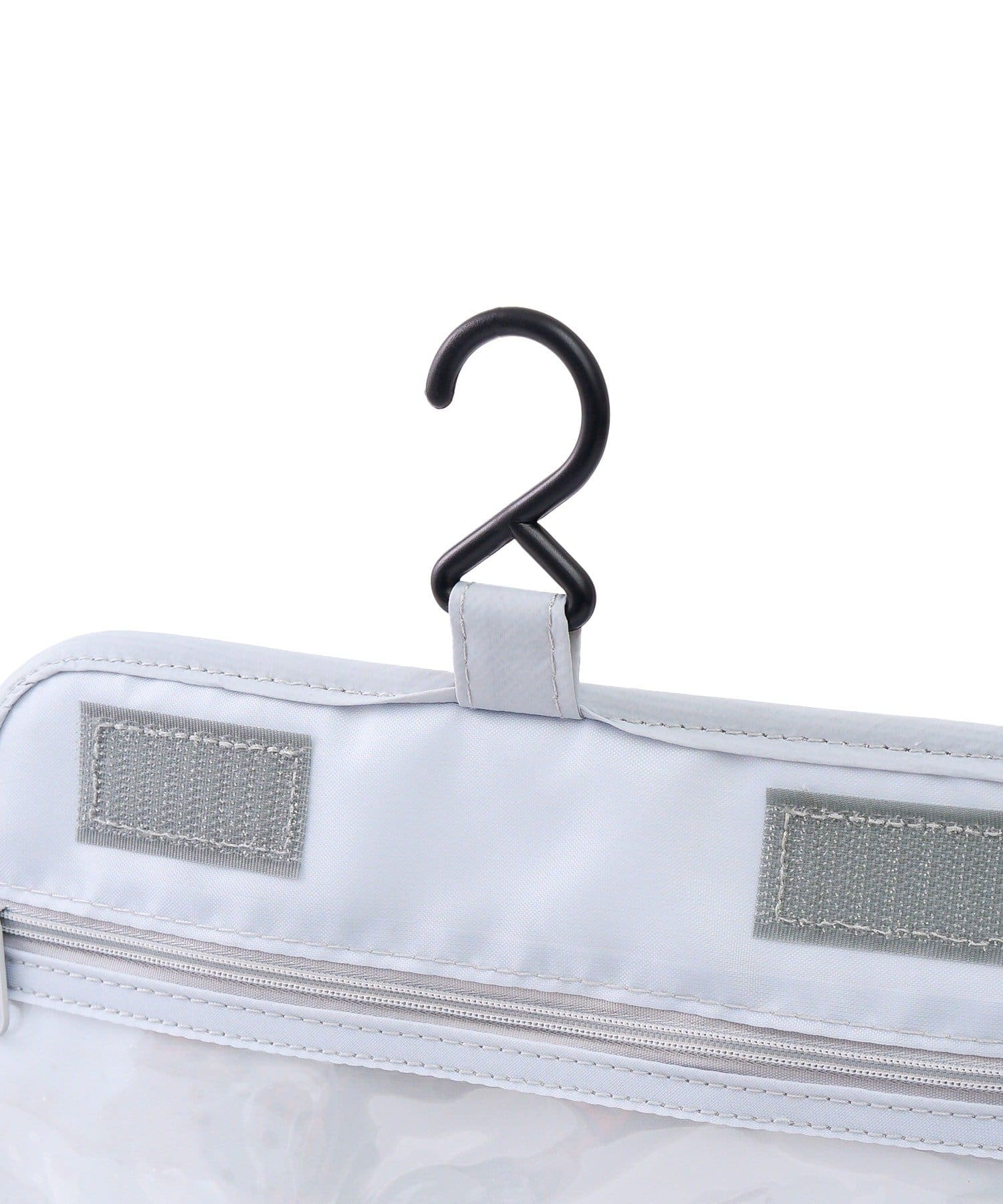 ●旅先で便利なフックに引っかけられるハンギングポーチ。