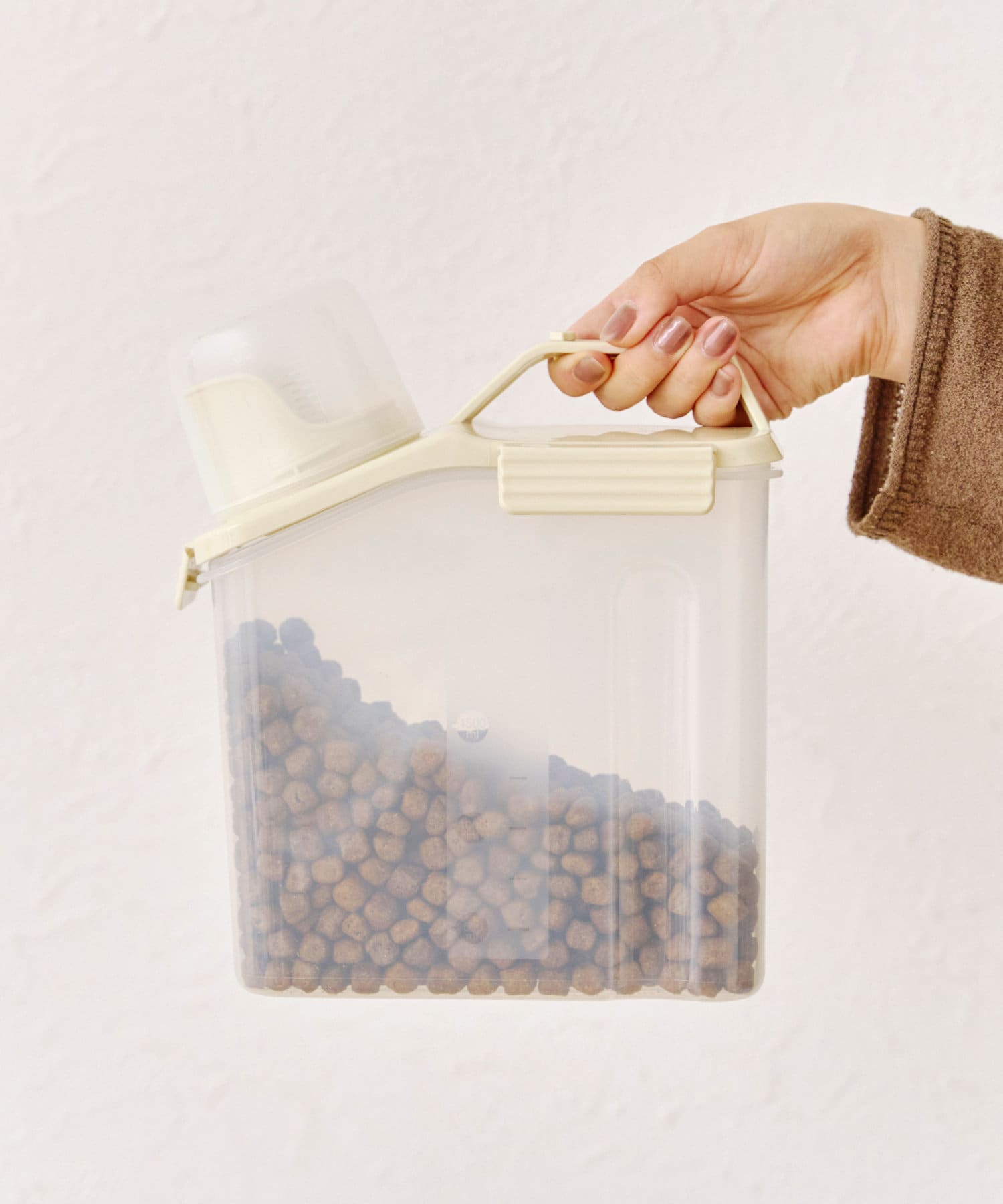 ●ボトル型でハンドル付きなので持ち運び便利なペットフード用ストッカー!