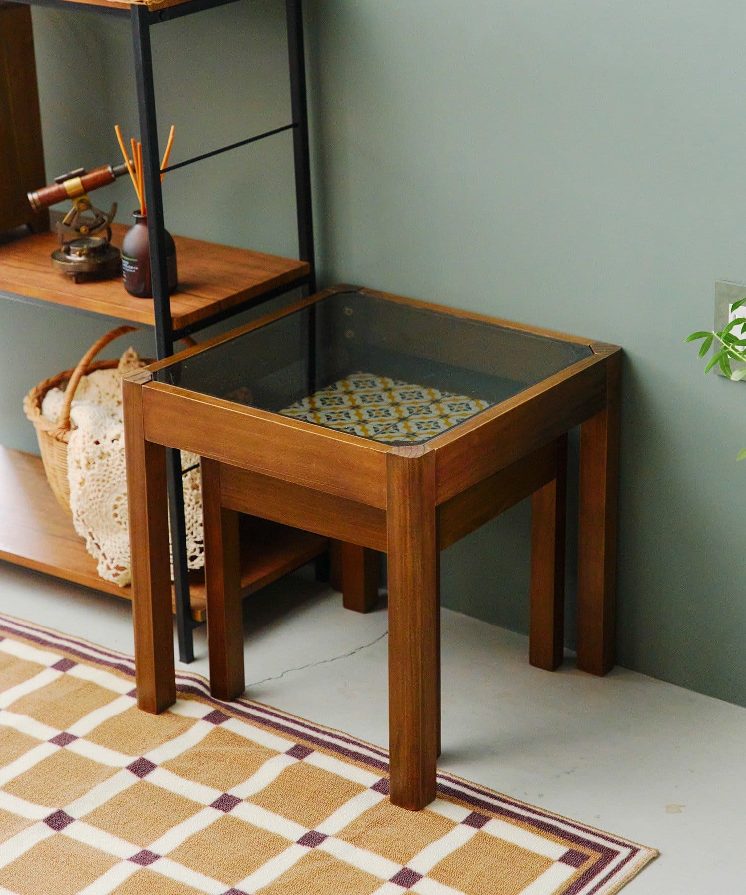 ●素朴な木の素材感がレトロで懐かしい味わいのあるデザインのネストテーブル。