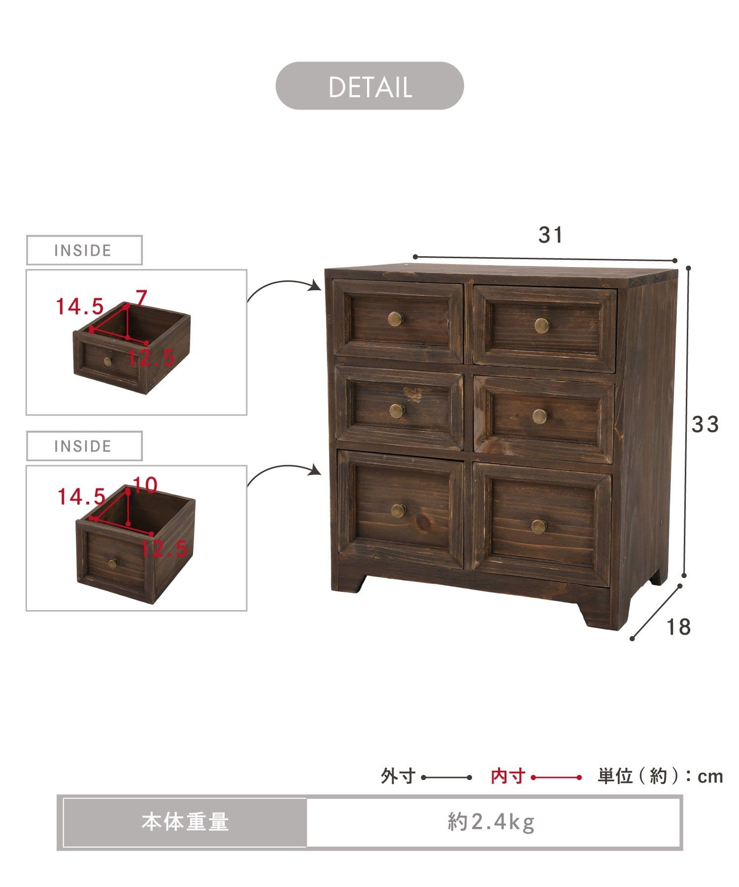 ●小物の整理に便利な6つの引き出し付きで、デスク周りやリビングの収納に最適です。