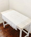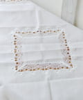 ●繊細なフチレースが上品にあしらわれた、アンティーク調のマルチクロス。