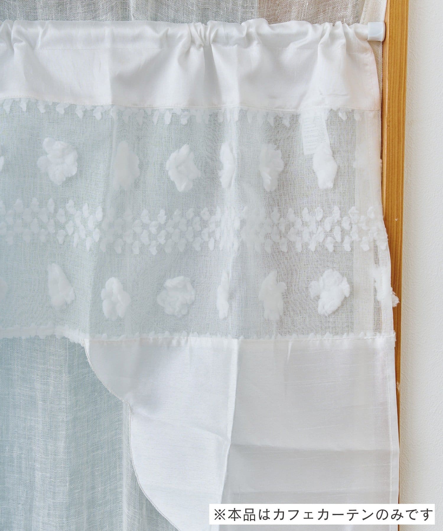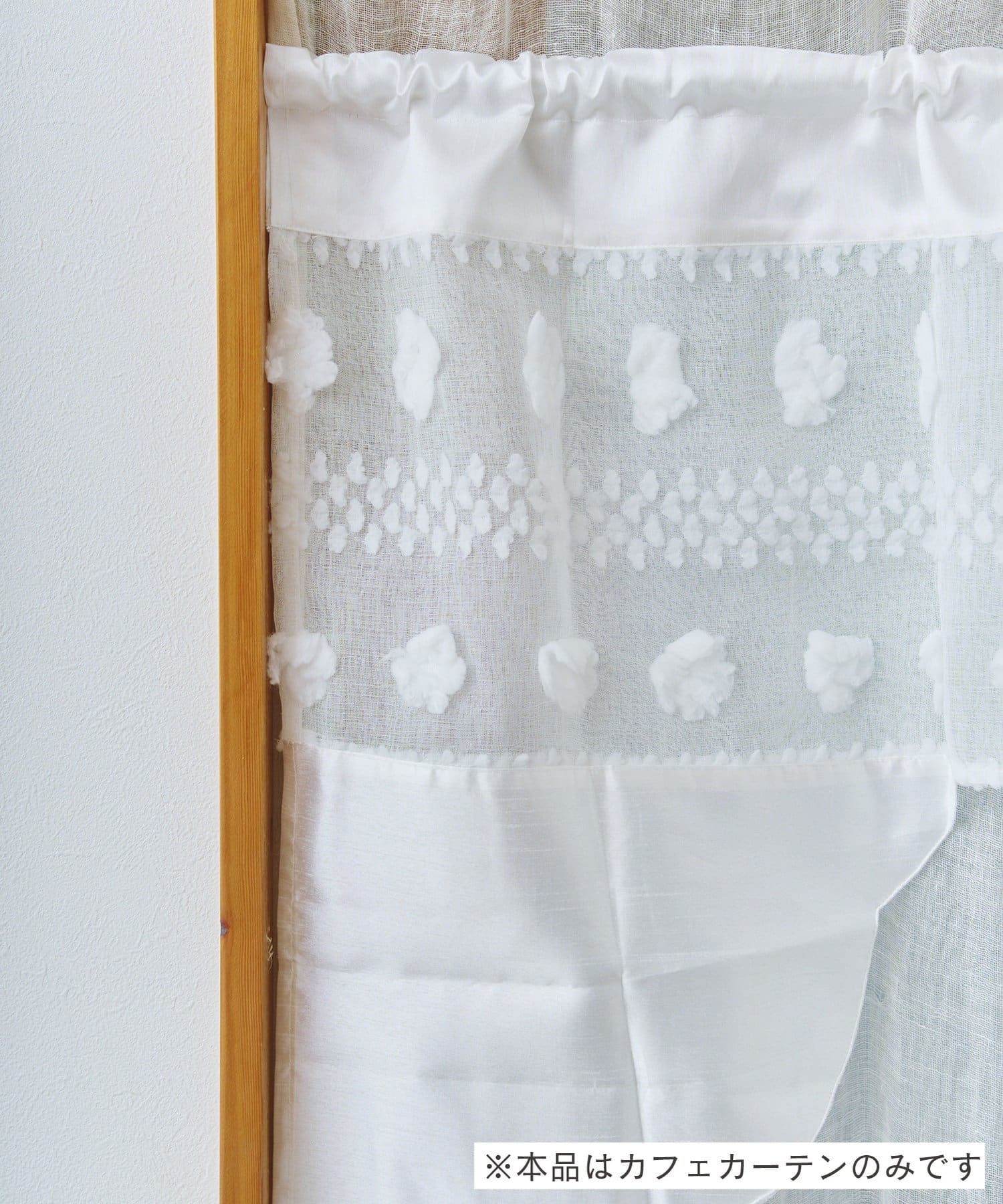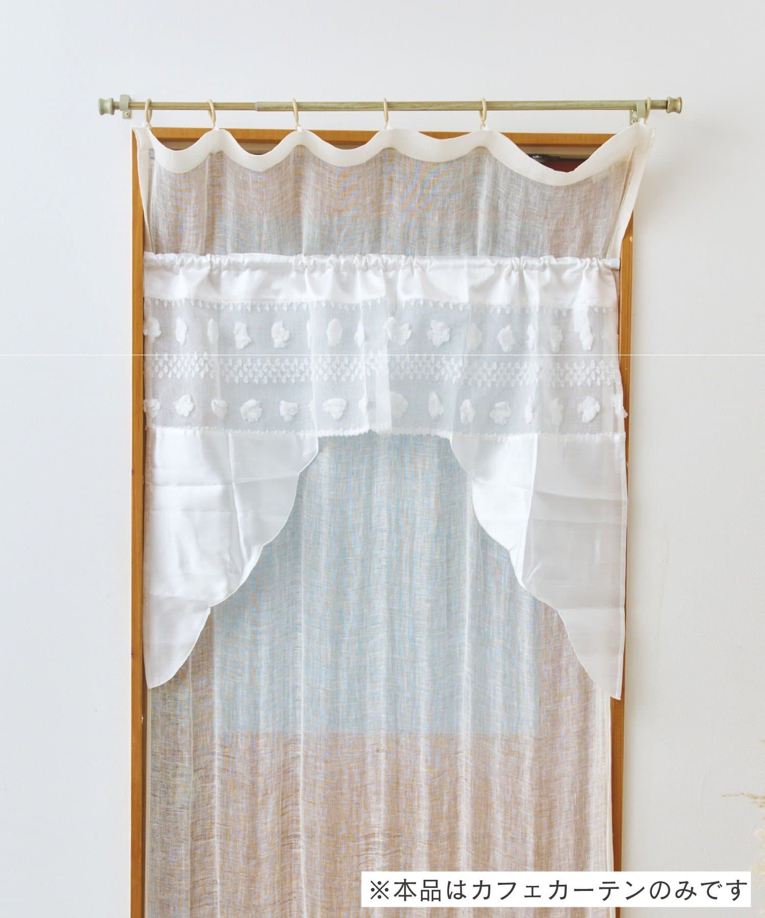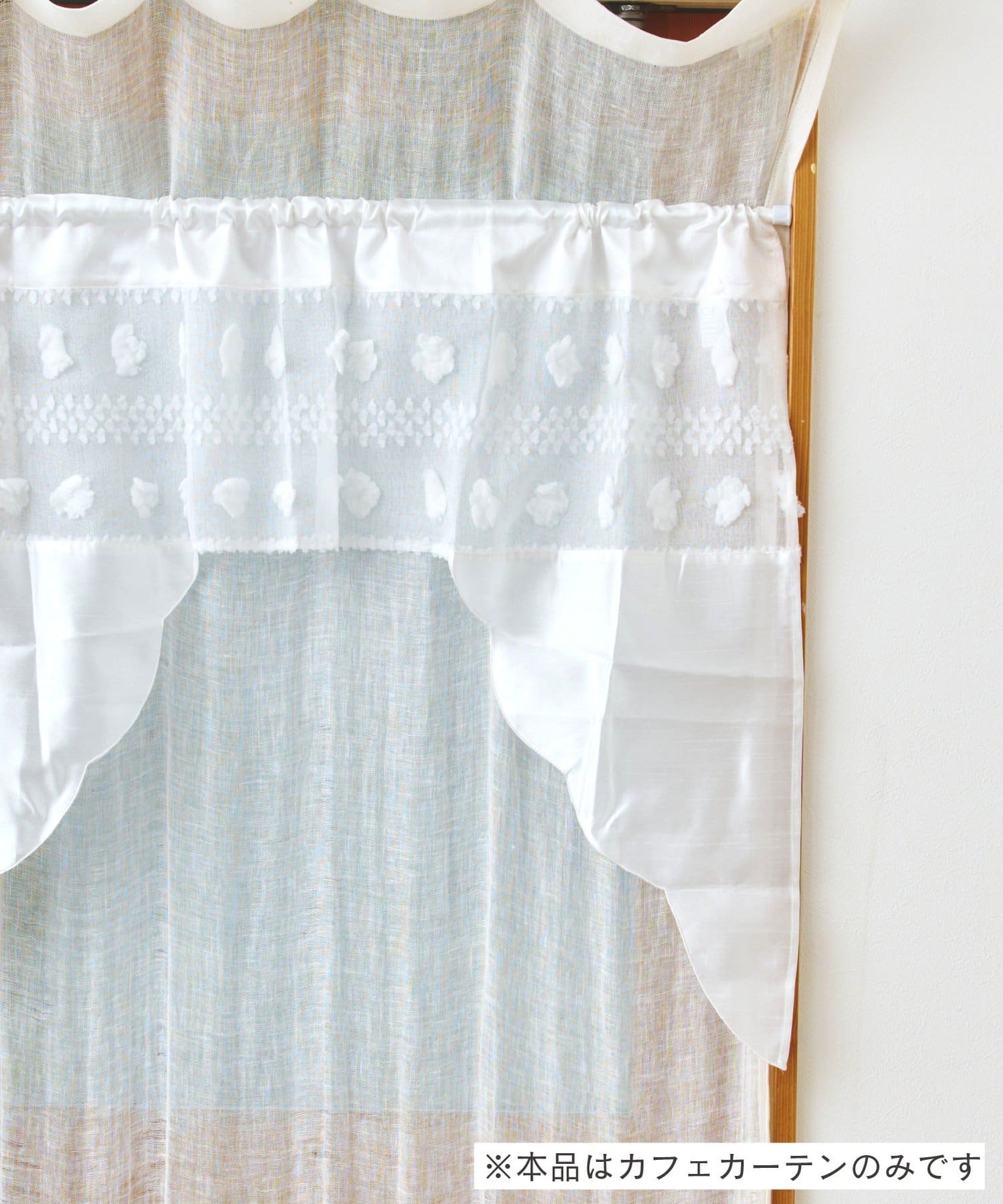●ふんわりとしたポンポンがアクセントになった、愛らしいデザインのショートカフェカーテン。