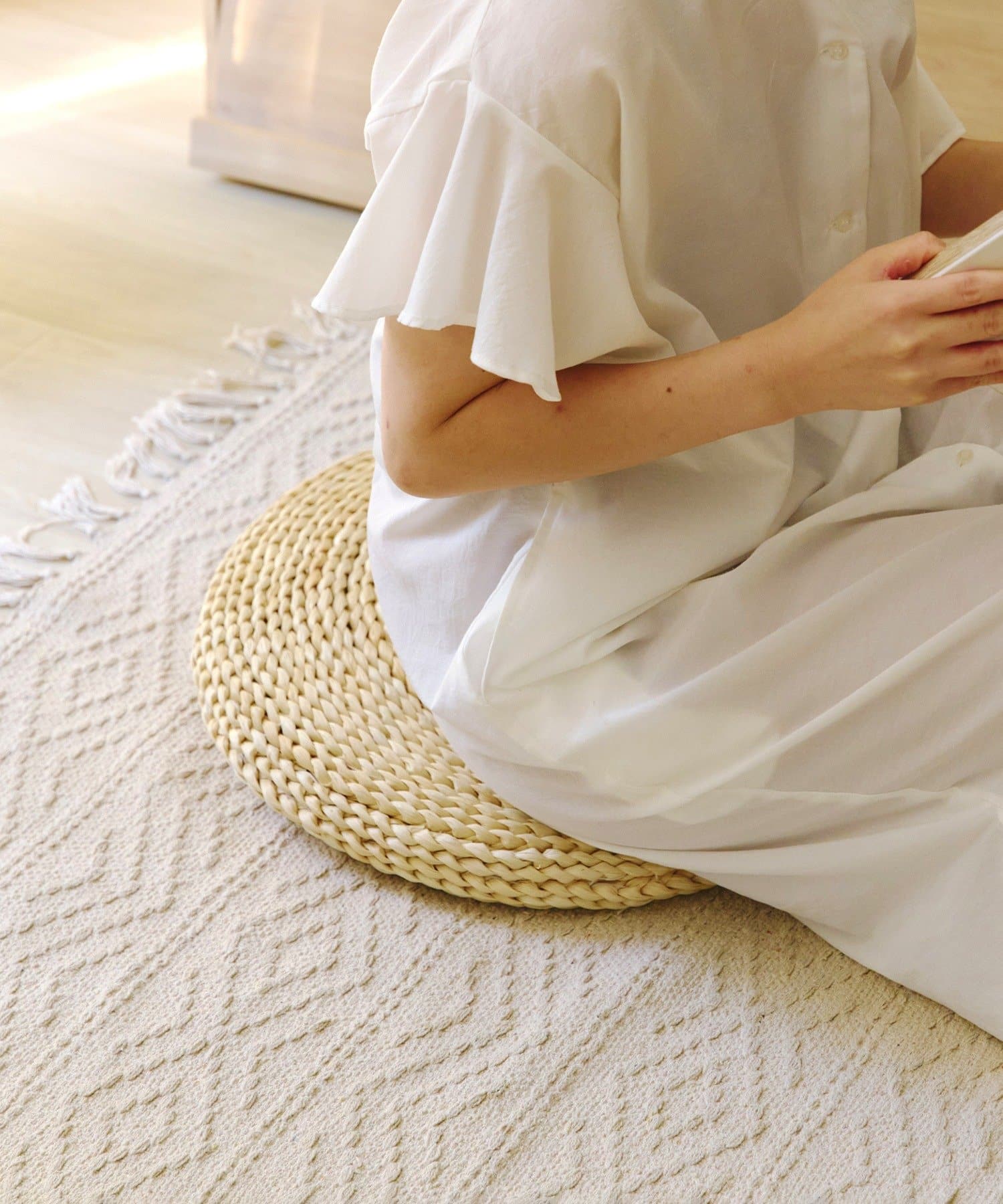 ●ナチュラルな雰囲気漂う、メイズ(とうもろこしの皮)素材を使用したクッション。