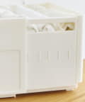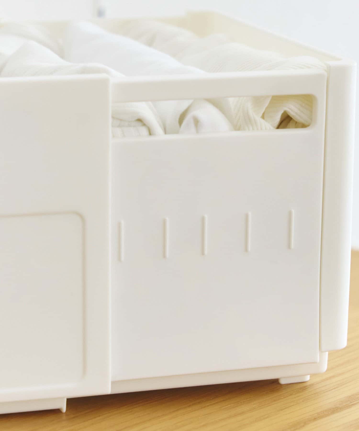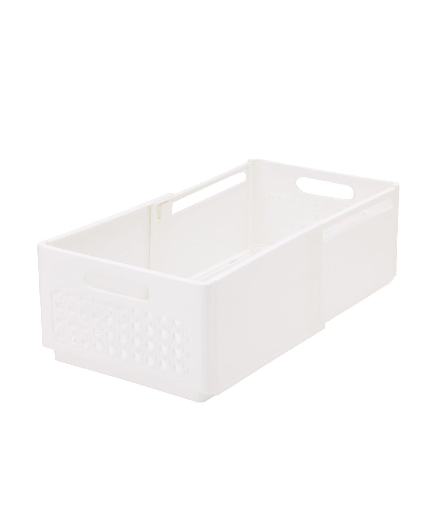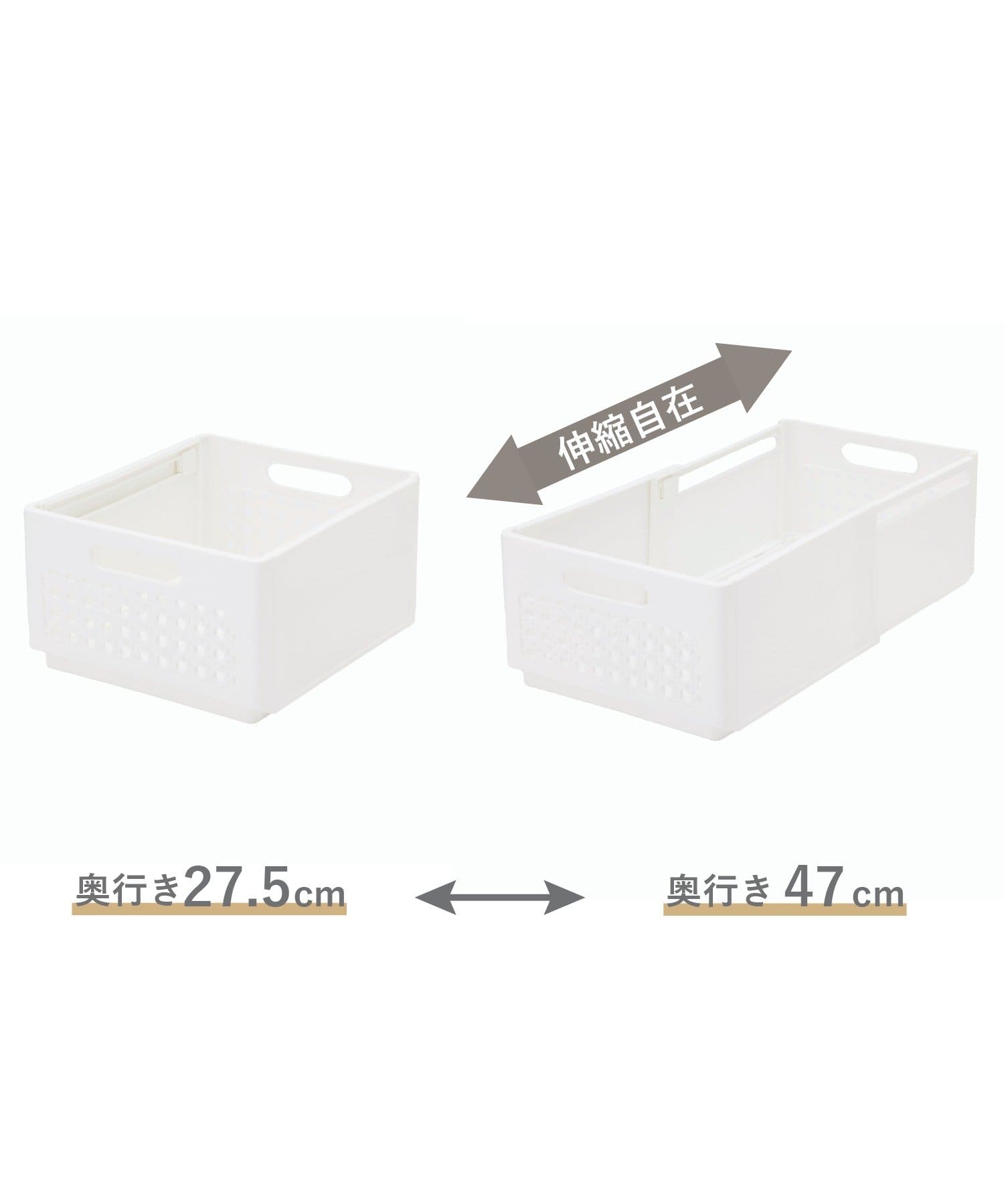 ●奥行きを伸縮できる設計で、置く場所や収納量に合わせて調整可能な便利収納ボックス。