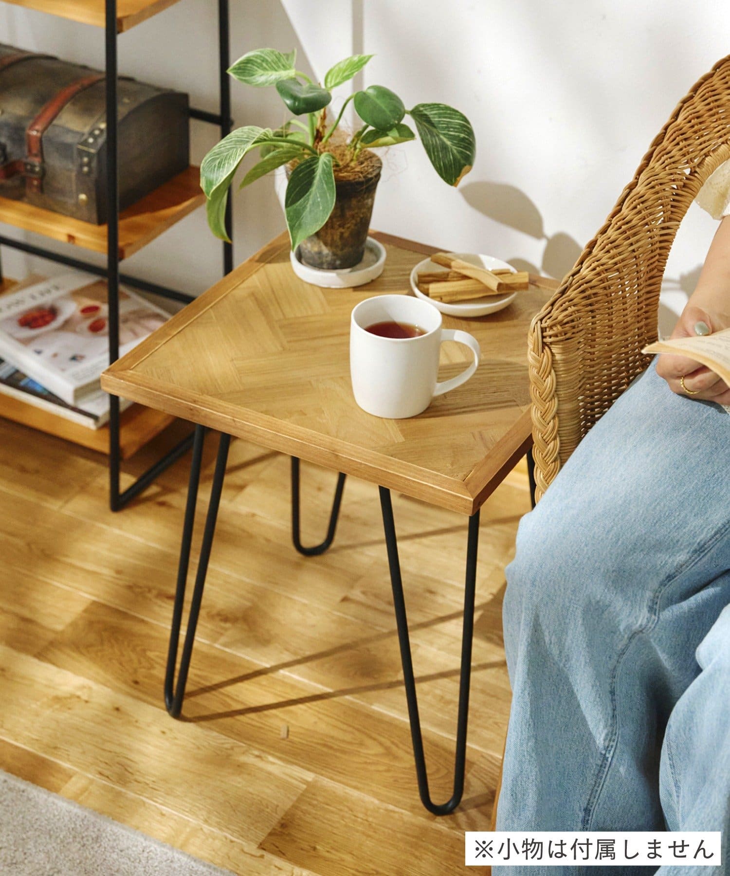 ●ヘリンボーン調天板がおしゃれな木製テーブル。