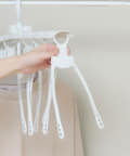 ●8着まとめて干せて、一気に取り込める便利なワンタッチハンガー。
