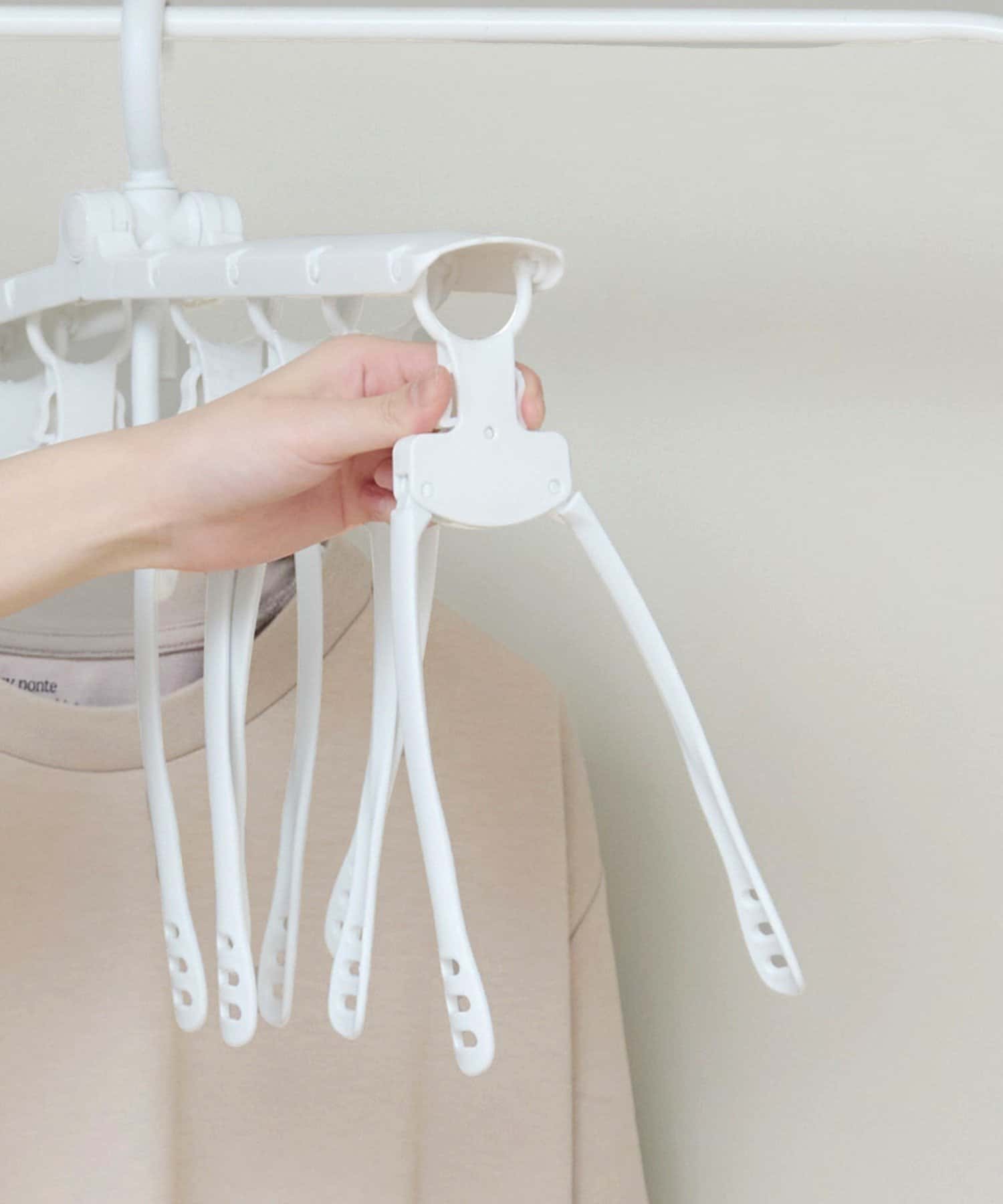 ●首元を伸ばさず干せる設計で、お気に入りの服も型崩れしにくく安心。