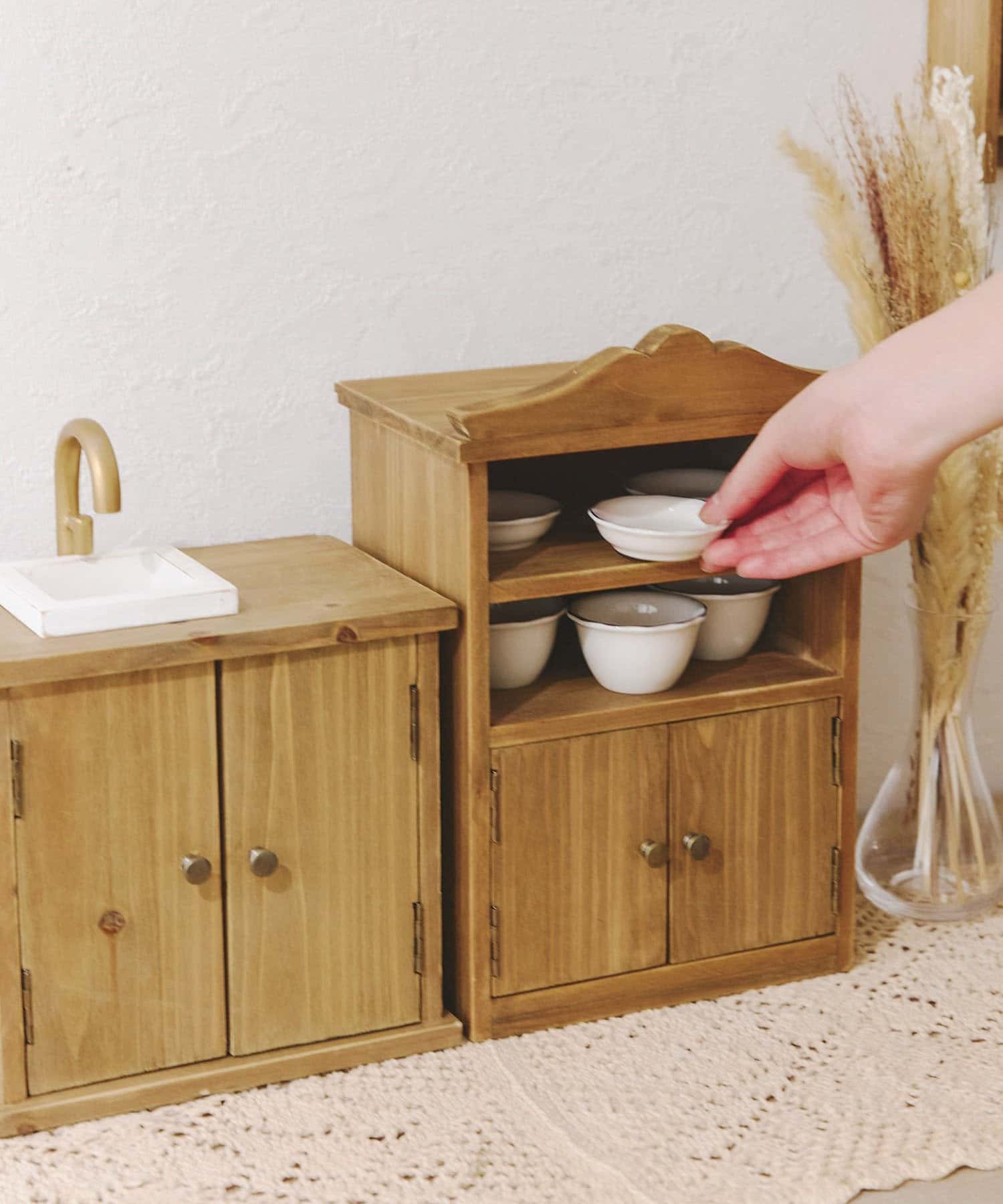 ●ドールやぬいぐるみが使えるようなミニサイズの食器棚。