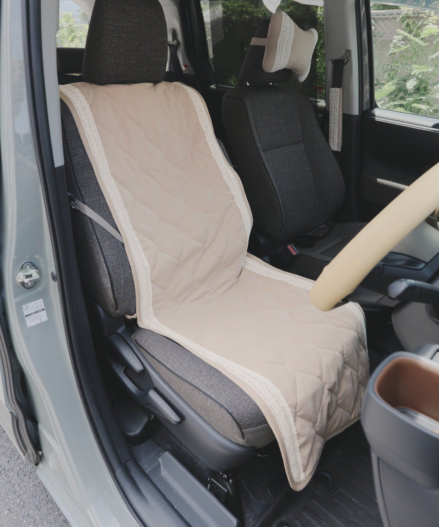 ●シンプルなベージュのキルト生地にレースが可愛らしいデザインです。