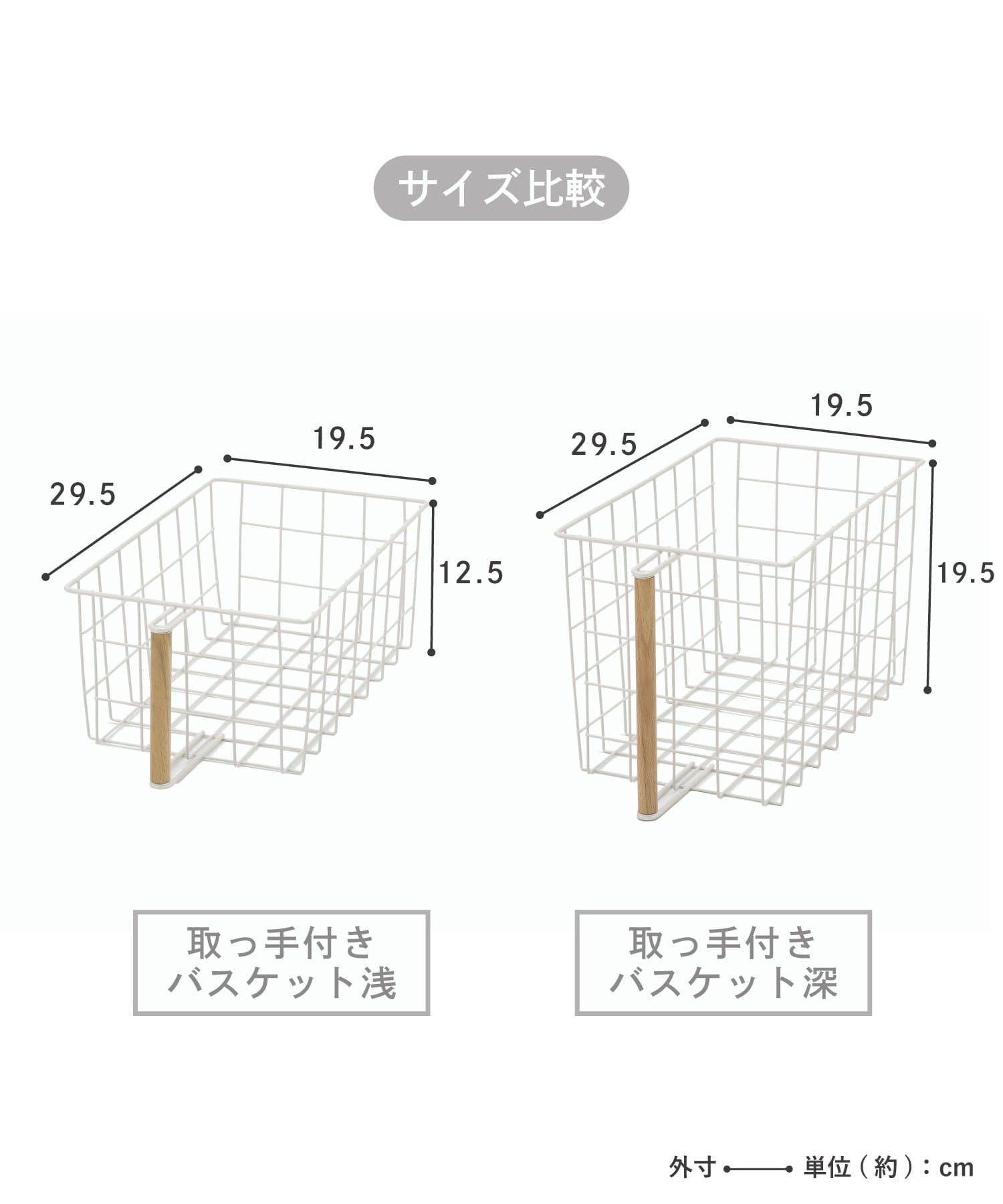 ●ナチュラルな風合いと利便性を兼ね備えた、ウッドハンドルのワイヤーバスケット。