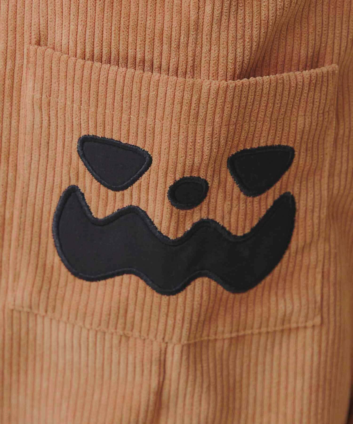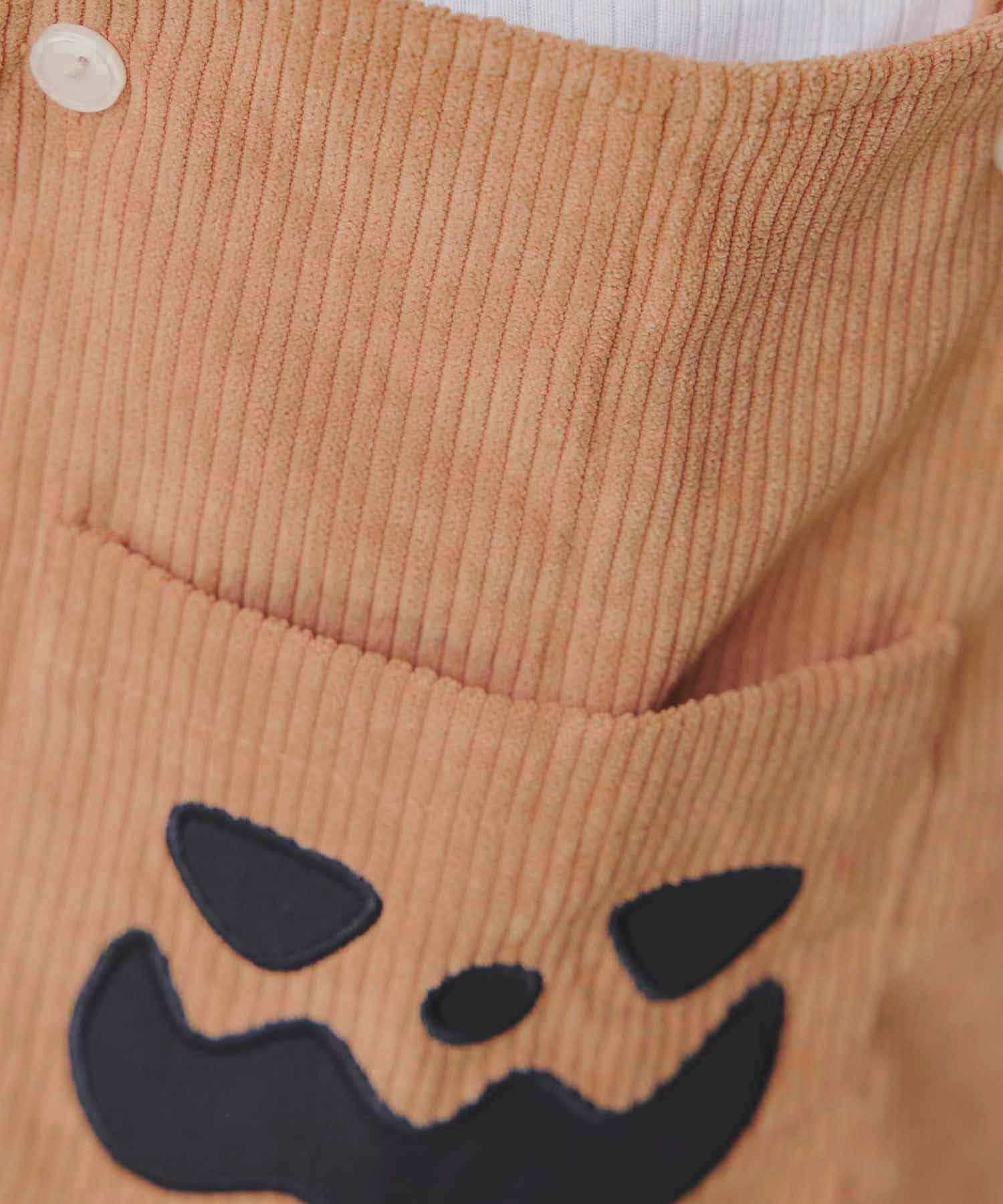 ●ベロア素材で柔らかく着心地の良い、かぼちゃキッズサロペット。