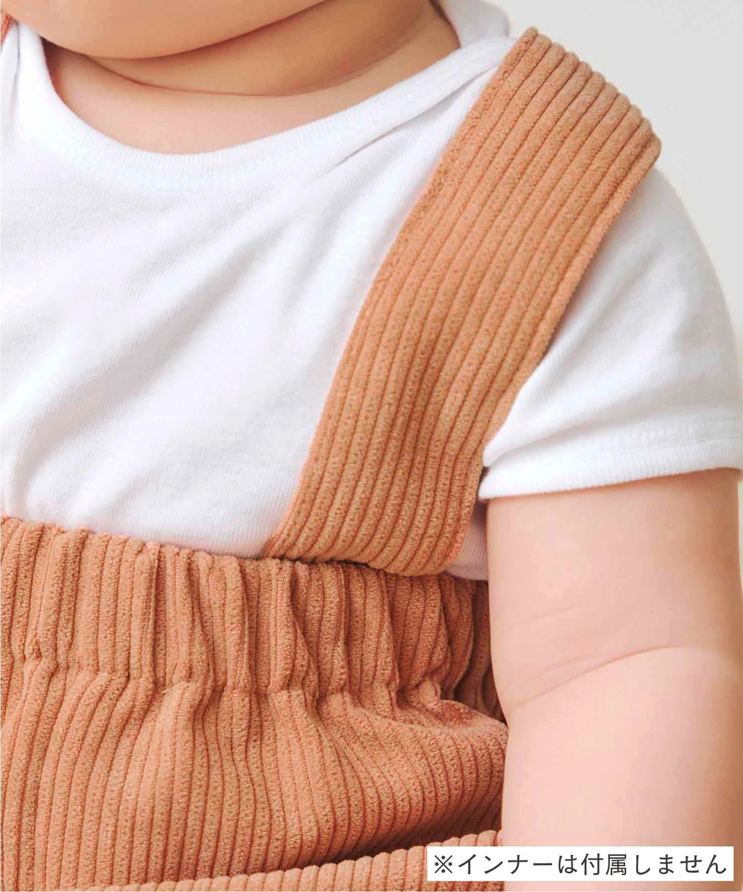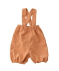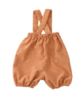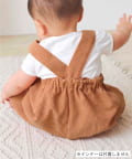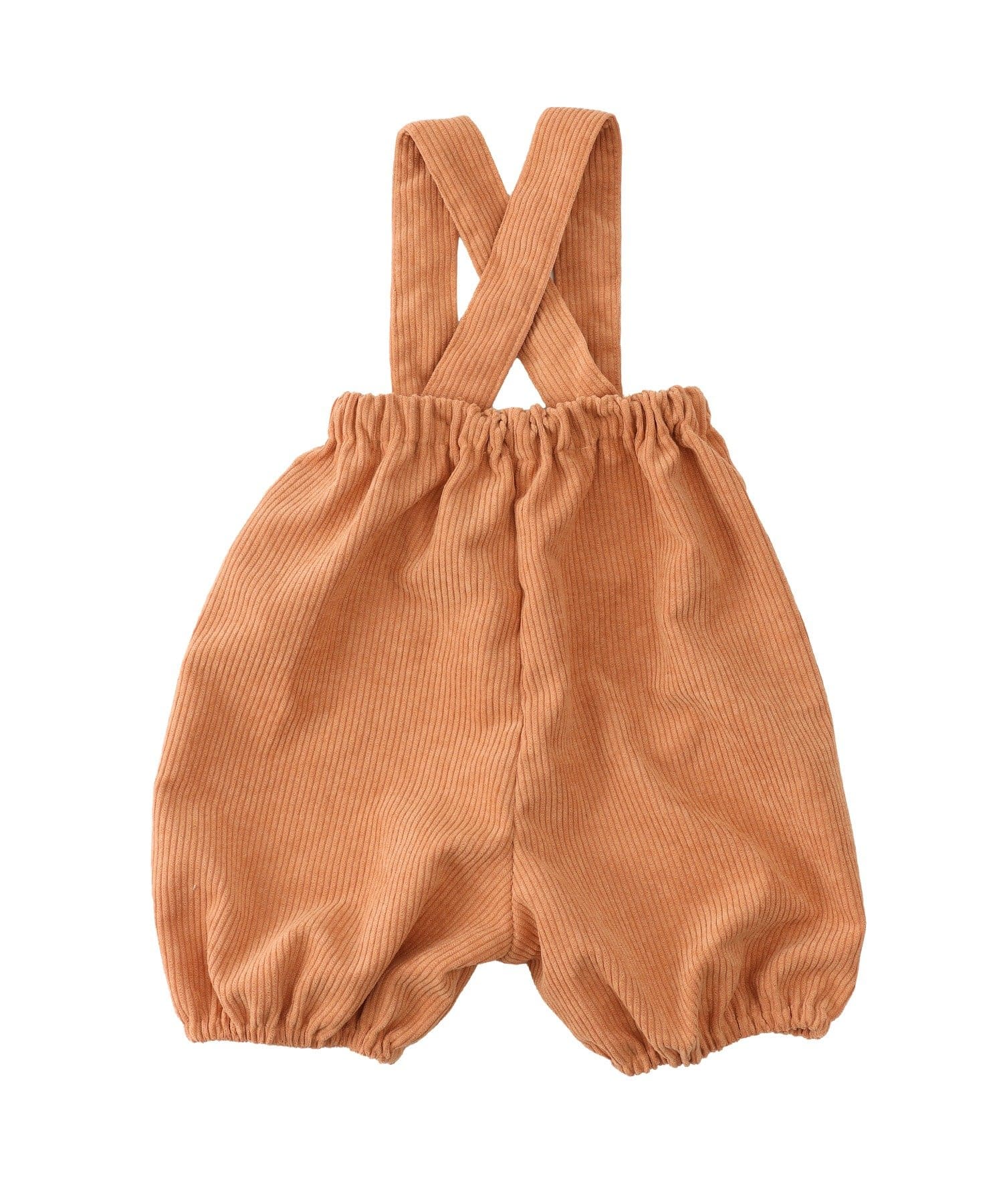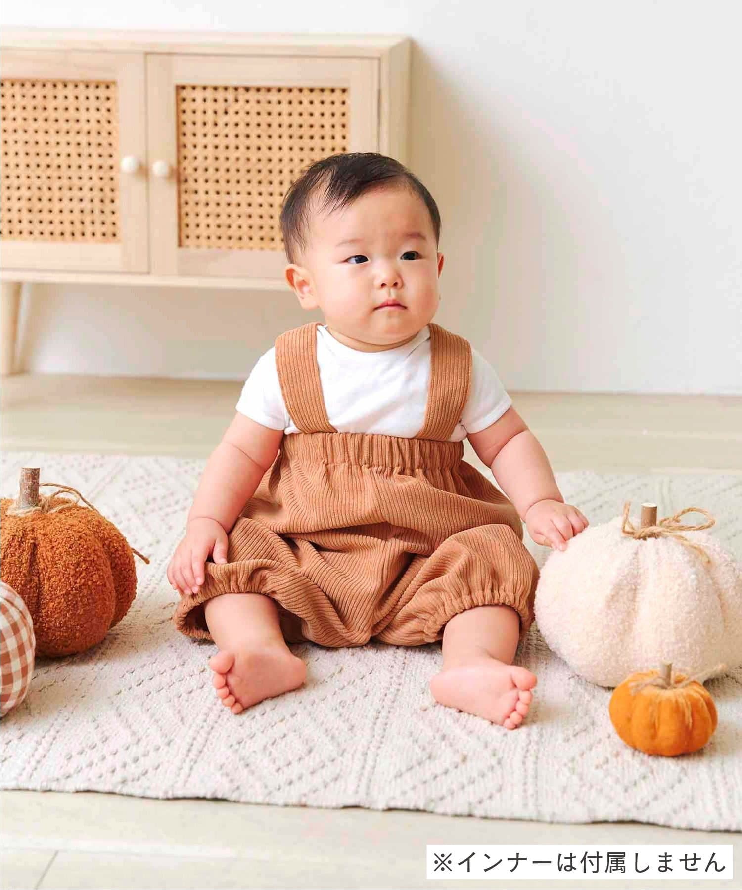 ●くすんだかぼちゃカラーのベロア素材で仕立てた、ベビーサロペット。