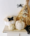 ●秋のインテリアにぴったりな、手編み風クロッシェのかぼちゃオブジェです。