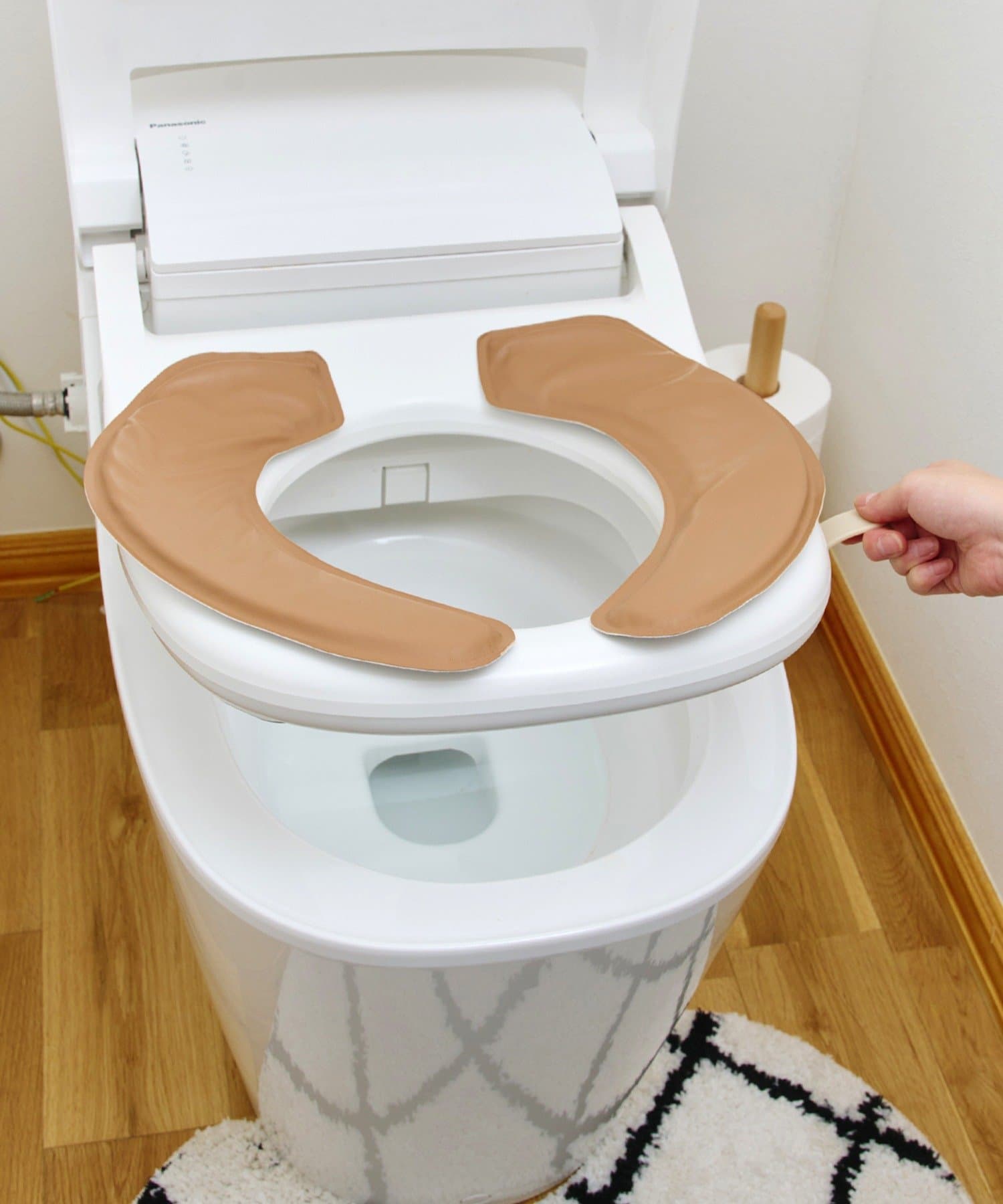 ●シールで簡単に取り付けられる便座ハンドルです。