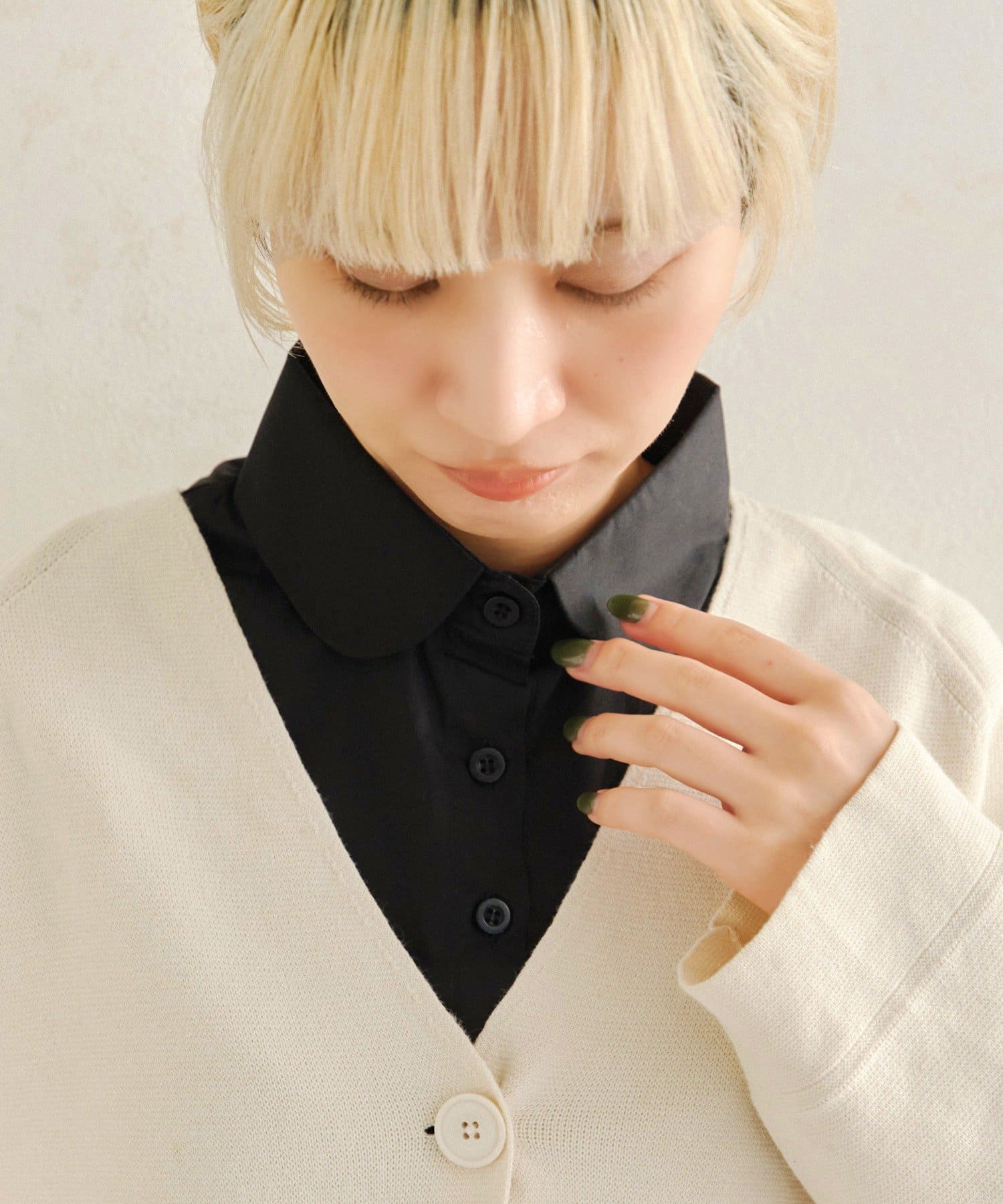 ●まるみのあるラウンドカラーがやさしい印象を与える、上品なつけ襟。