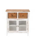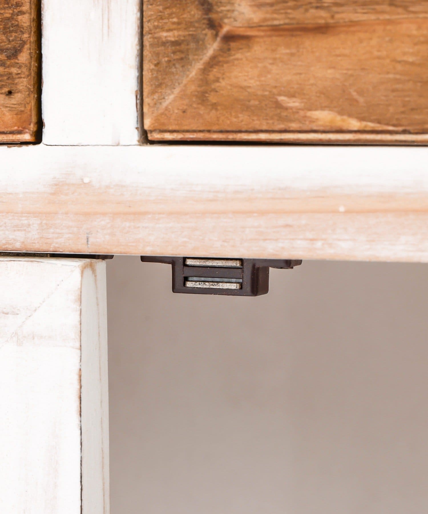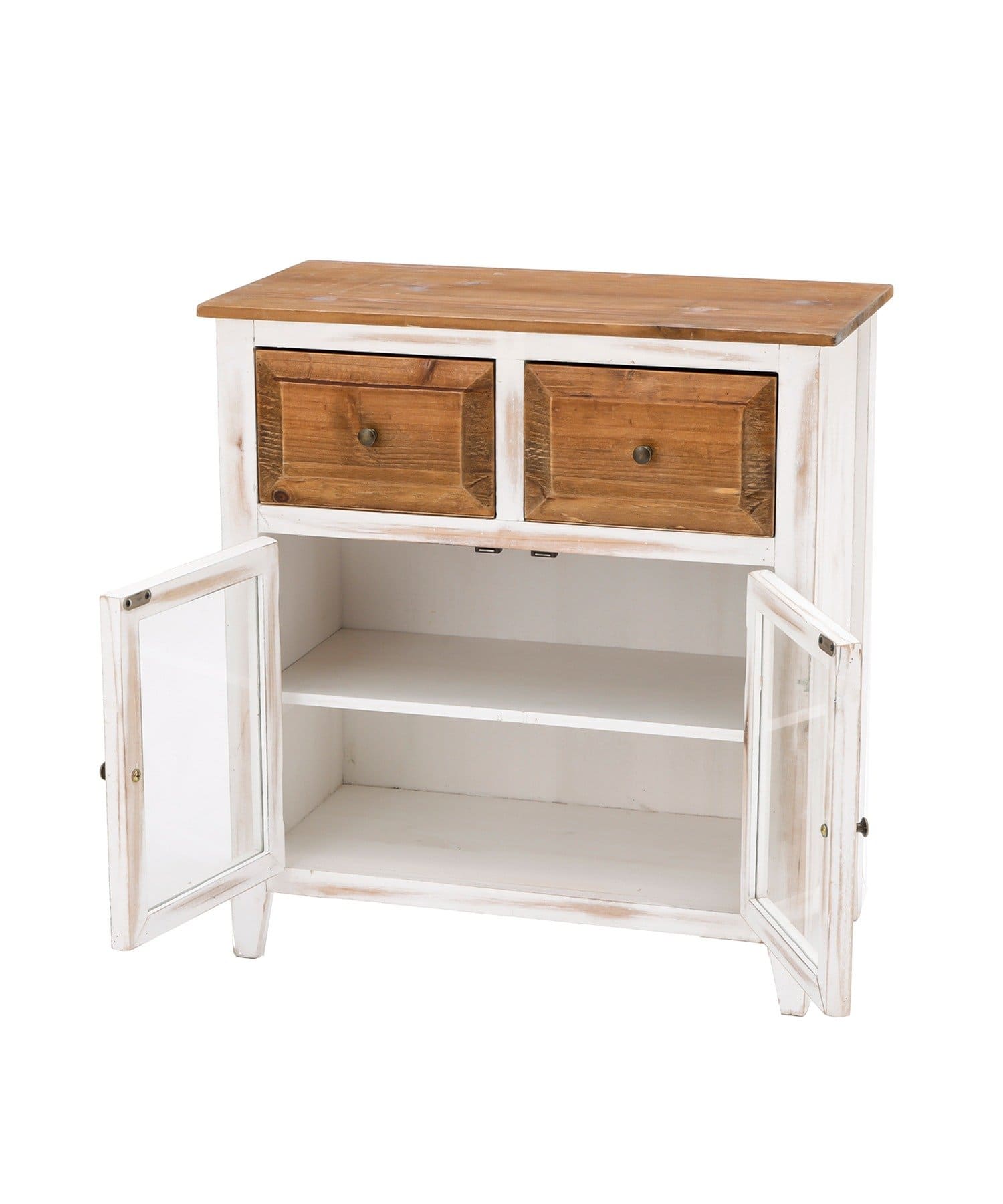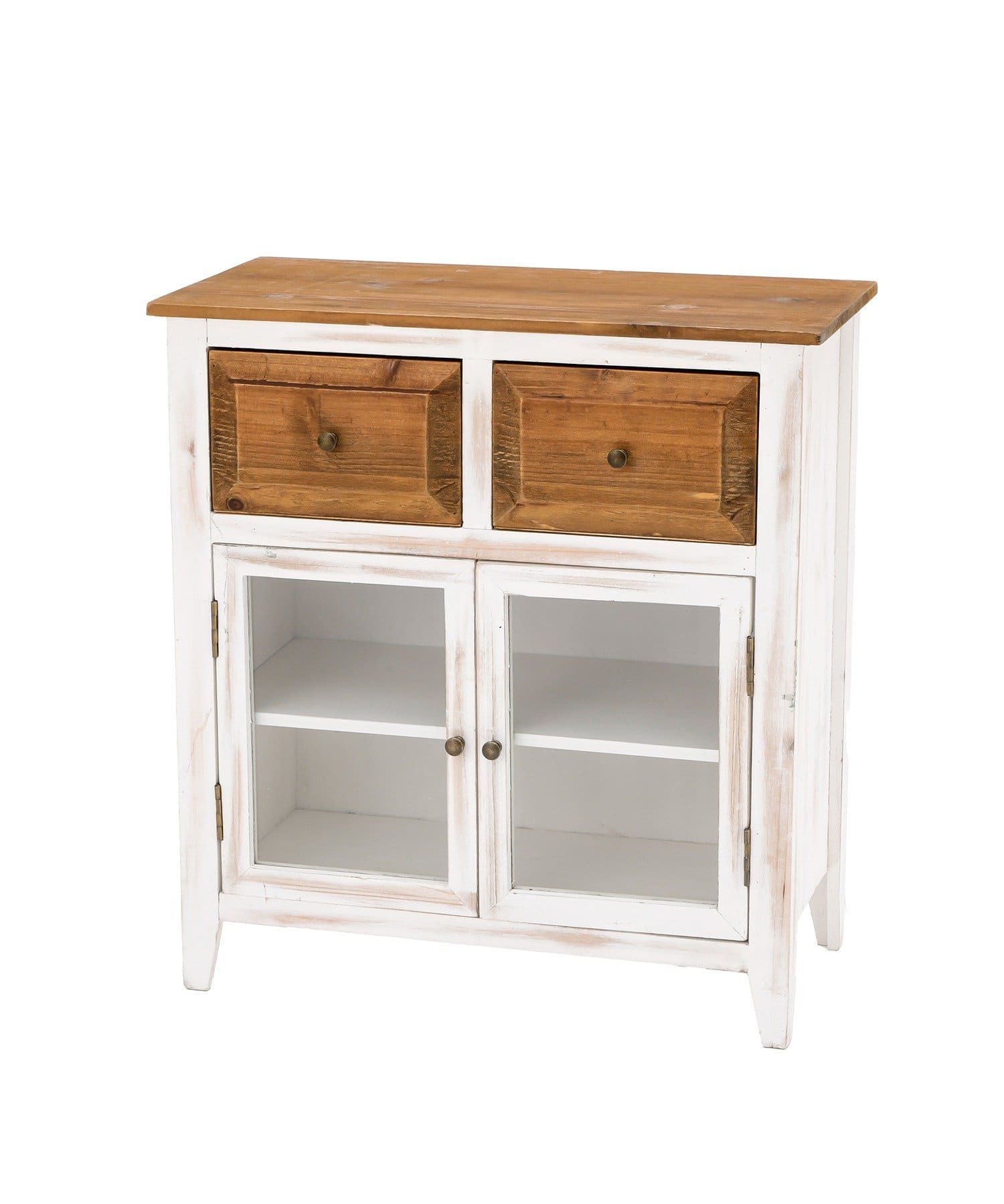 ●シャビーなホワイトとブラウンの木製天板と引き出しが魅力のドロワー付きキャビネット。