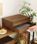 同シリーズのアイテムと幅と奥行きが同じなので、重ねたり組み合わせたりするとインテリアに統一感が生まれます。