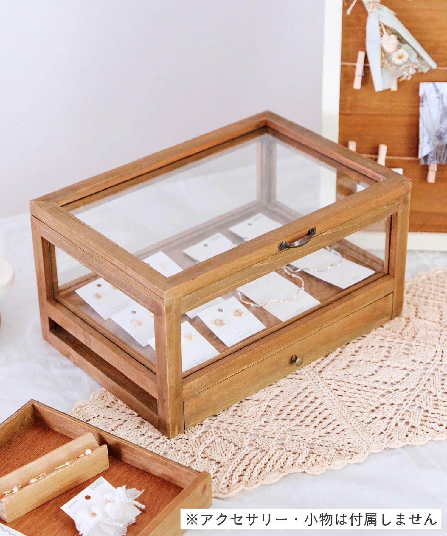 引き出しトレイ付きガラスキャビネット/魅せて飾るmarche display