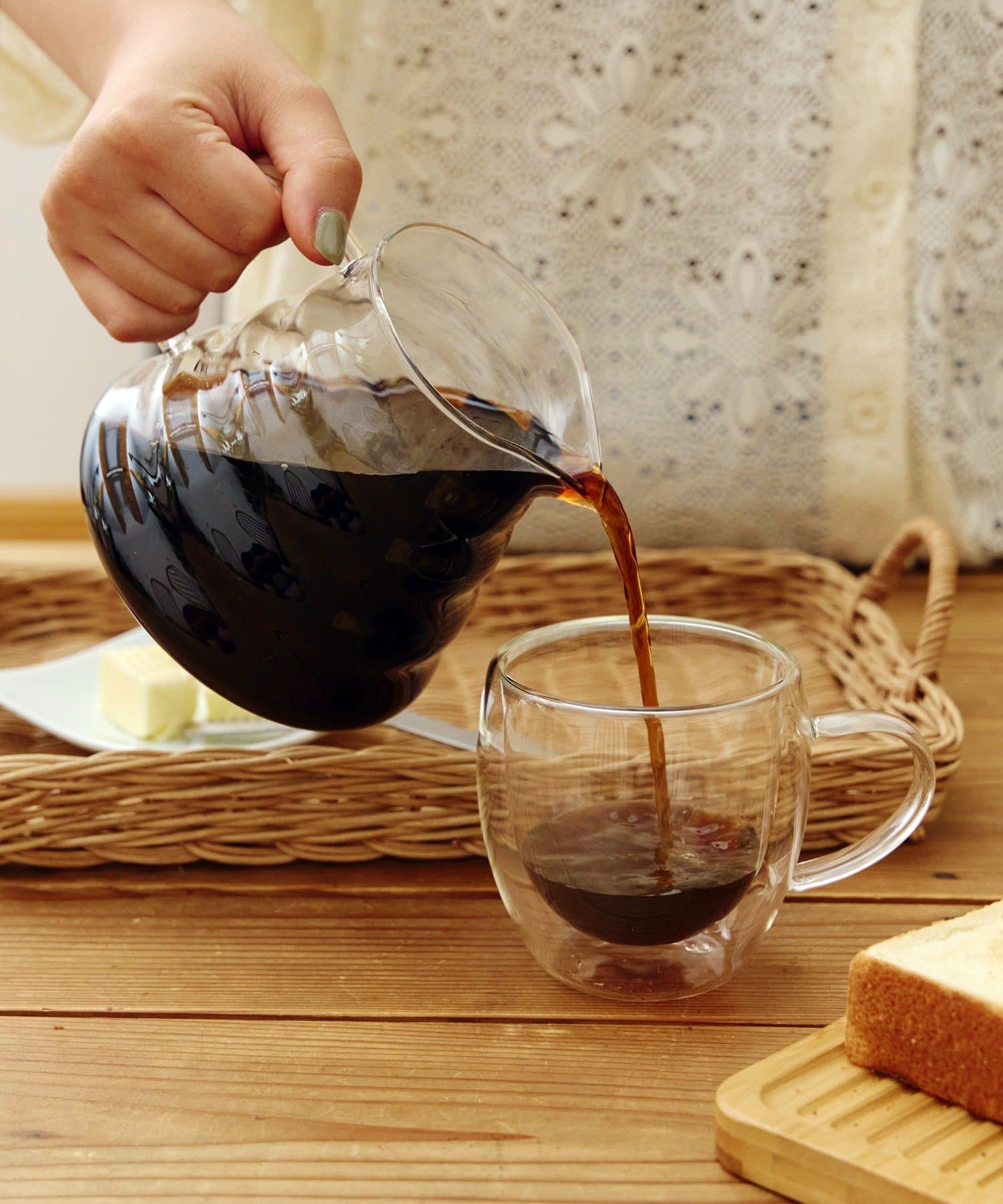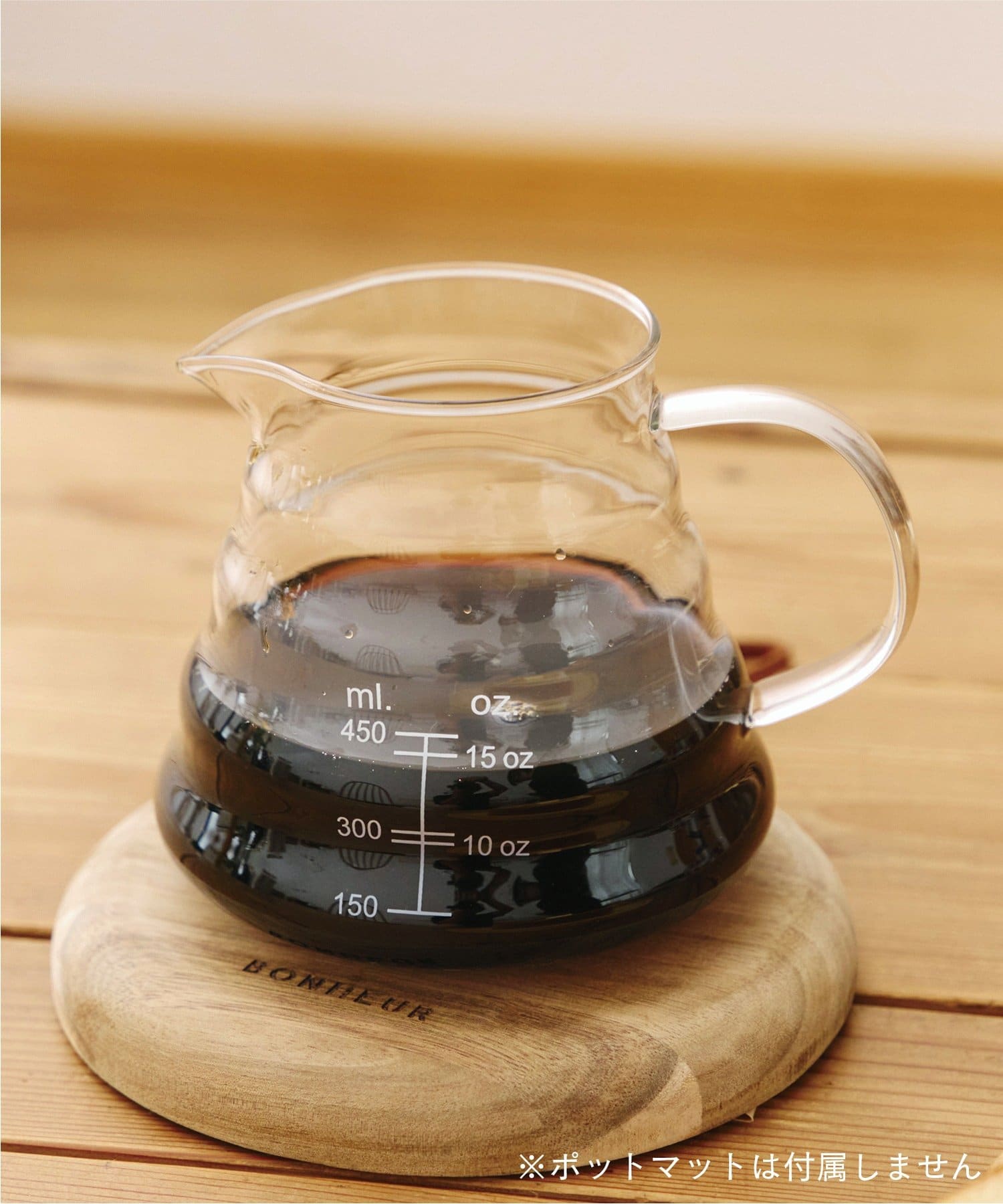 ●美しいウェーブデザインのガラス製サーバーで、抽出量がひと目で分かる目盛り付きです。