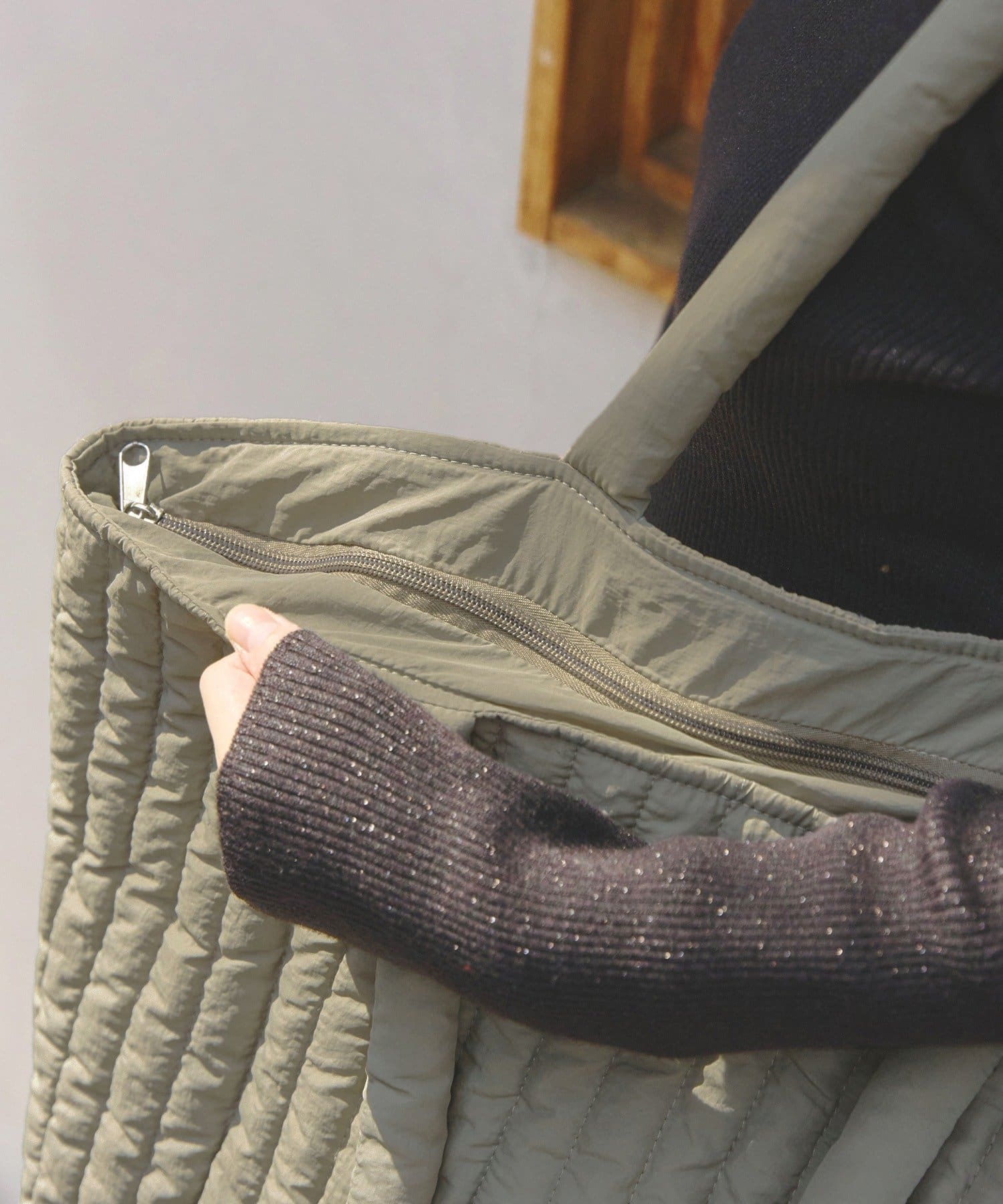 ●中わたが入ったキルトデザインで、ふんわりとした質感と軽やかな持ち心地が特徴のトートバッグです。