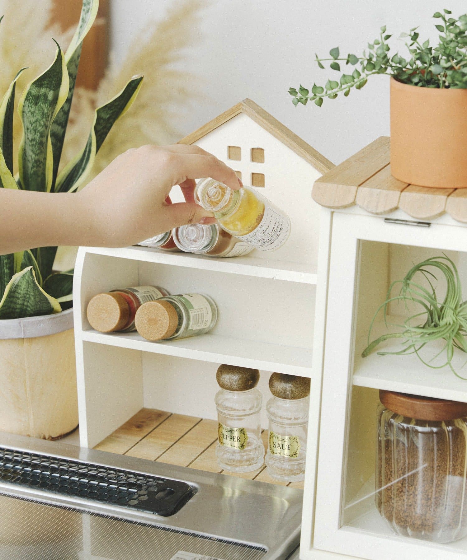 ●おうち風デザインが可愛いスパイスラック。