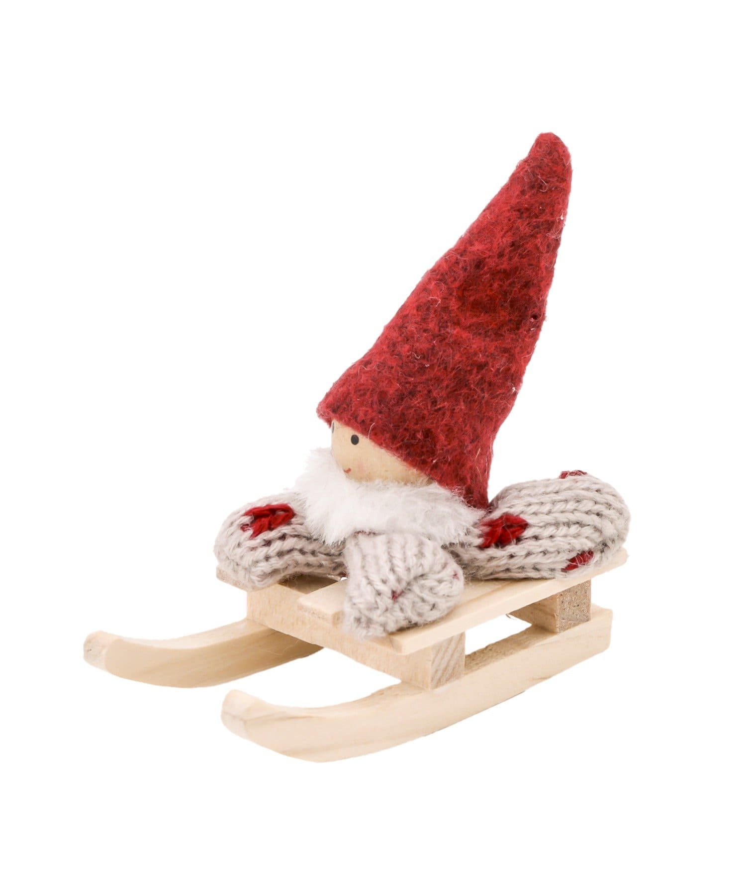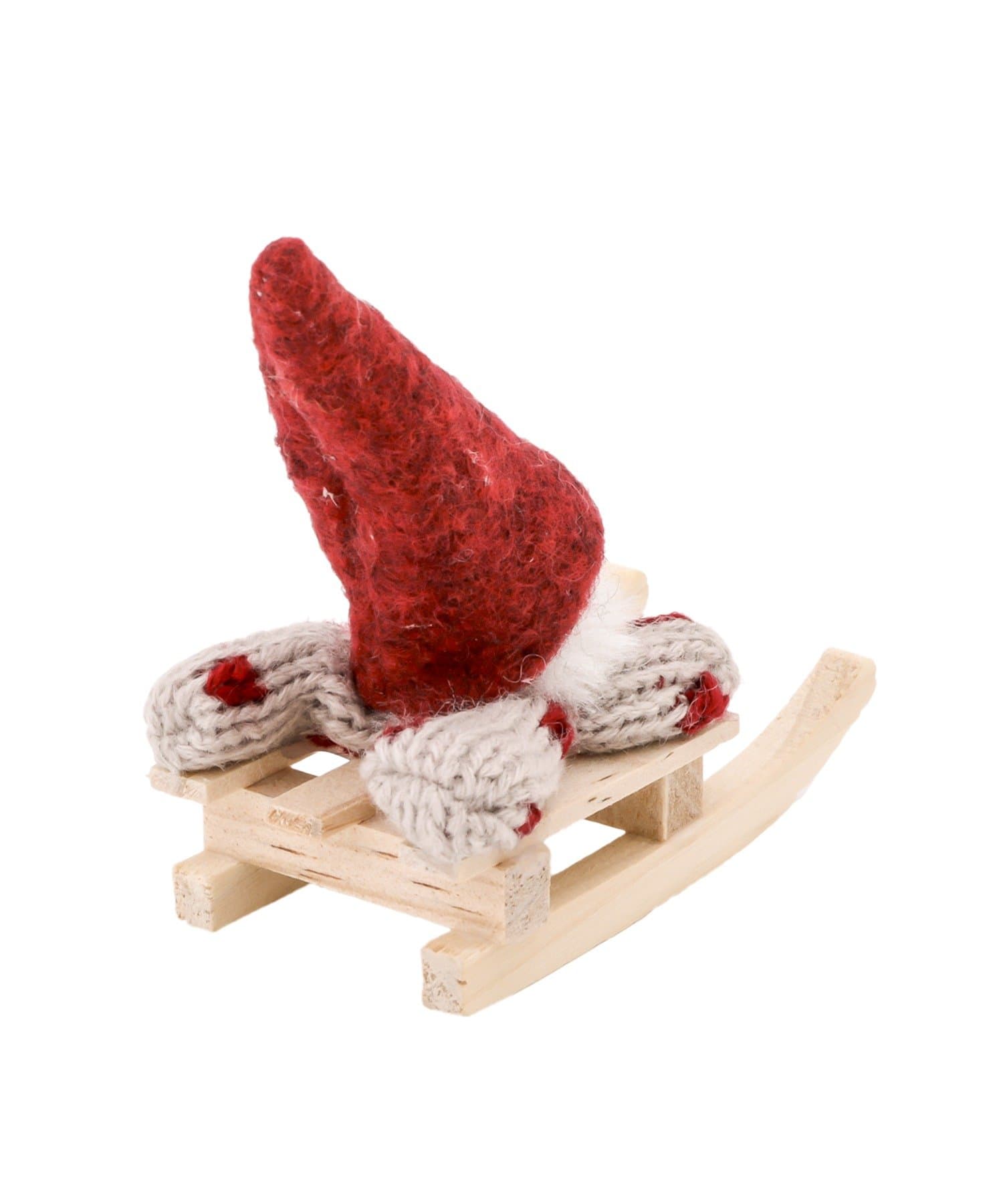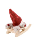 ●ハートの付いた帽子がかわいいソリに乗ったこびとのオブジェ。
