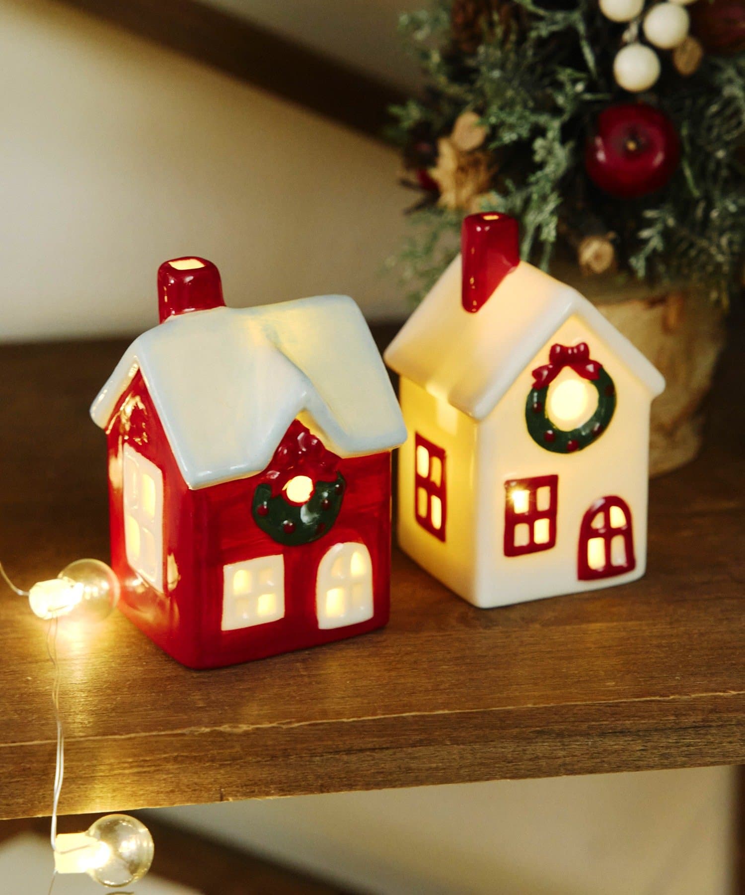 ●クリスマスシーズンを彩る、可愛らしいセラミック製のハウス型LEDライト。