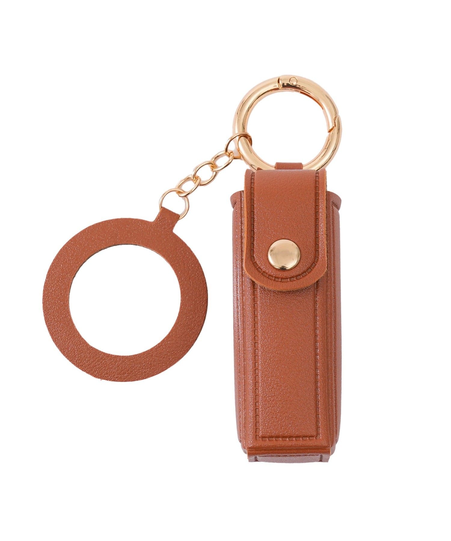 ●アクセサリー感覚で持てるフェイクレザーのミラー付きリップケース。