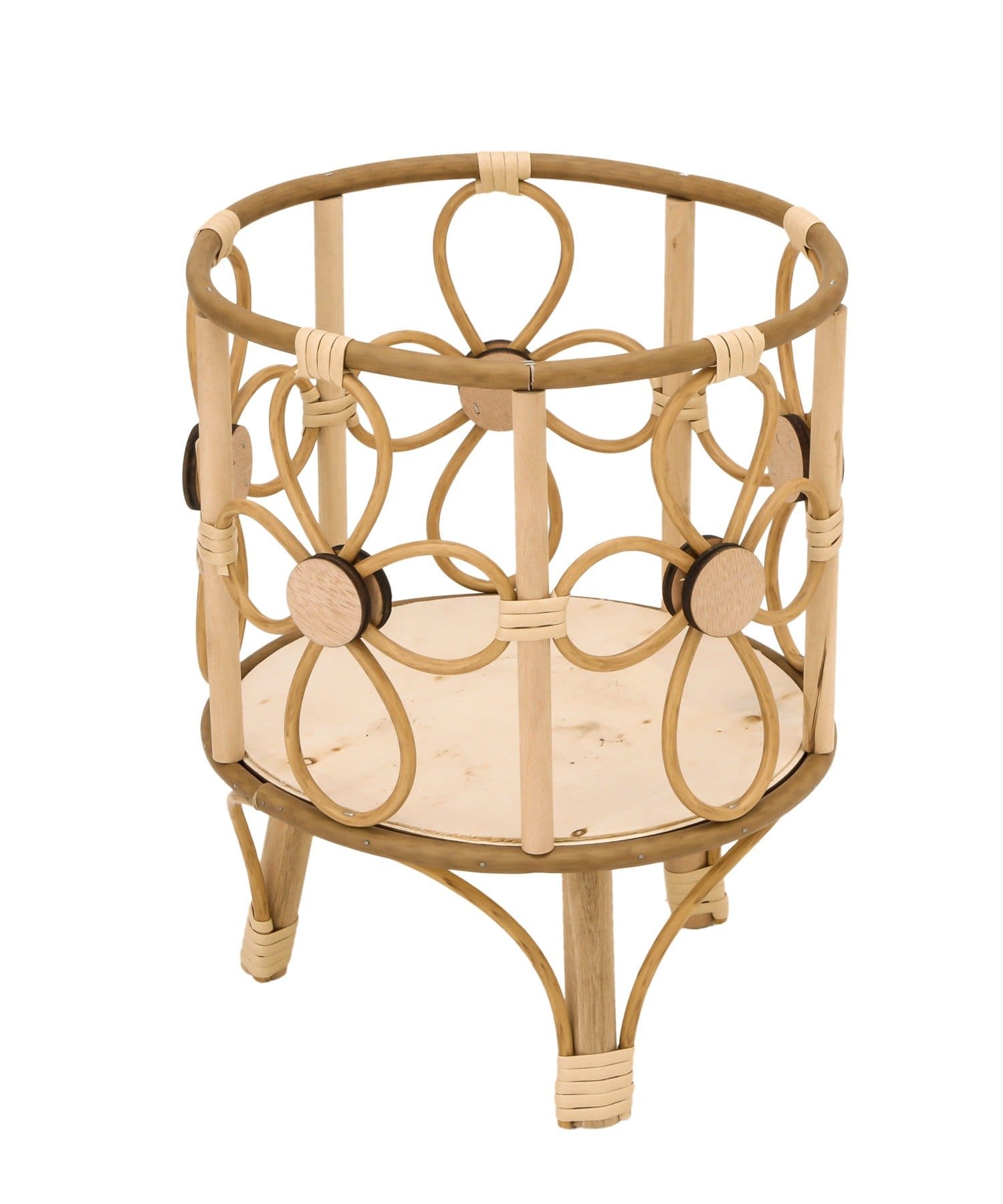 ●可愛いフラワー型に編まれたラタン風デザインのポットカバー。