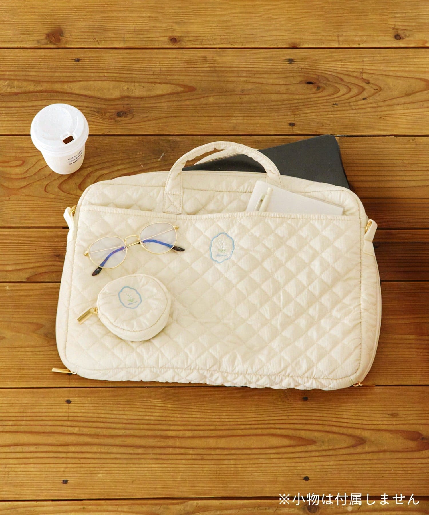 ●パソコンを入れたまま使用できるキルディング生地のPCバッグ。