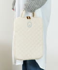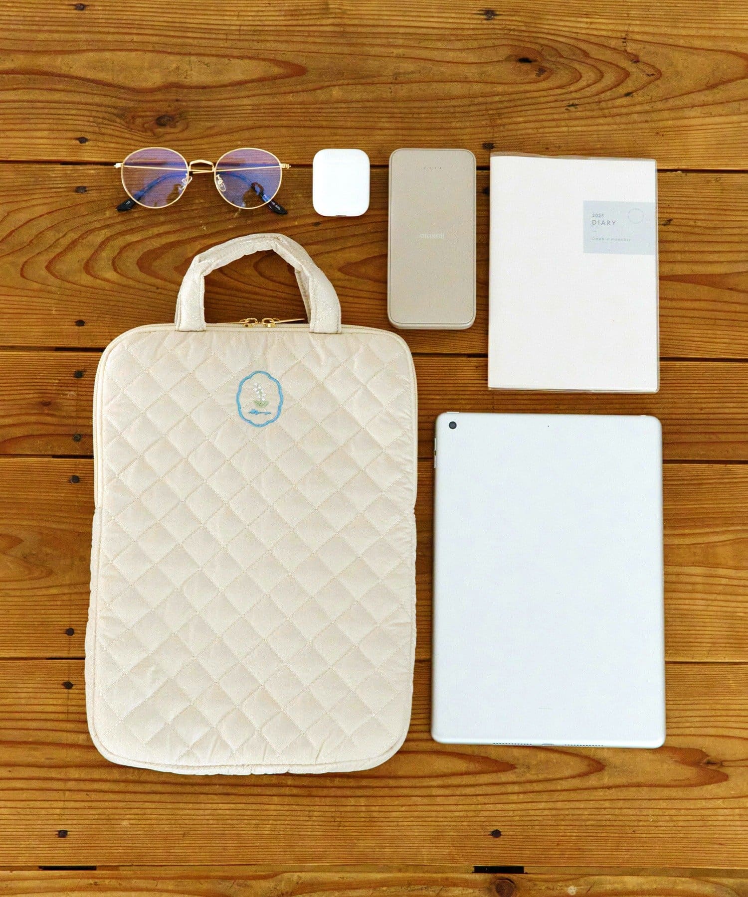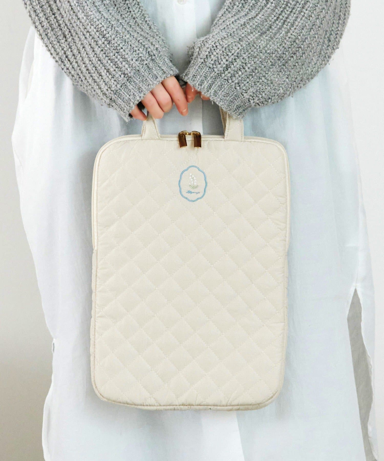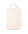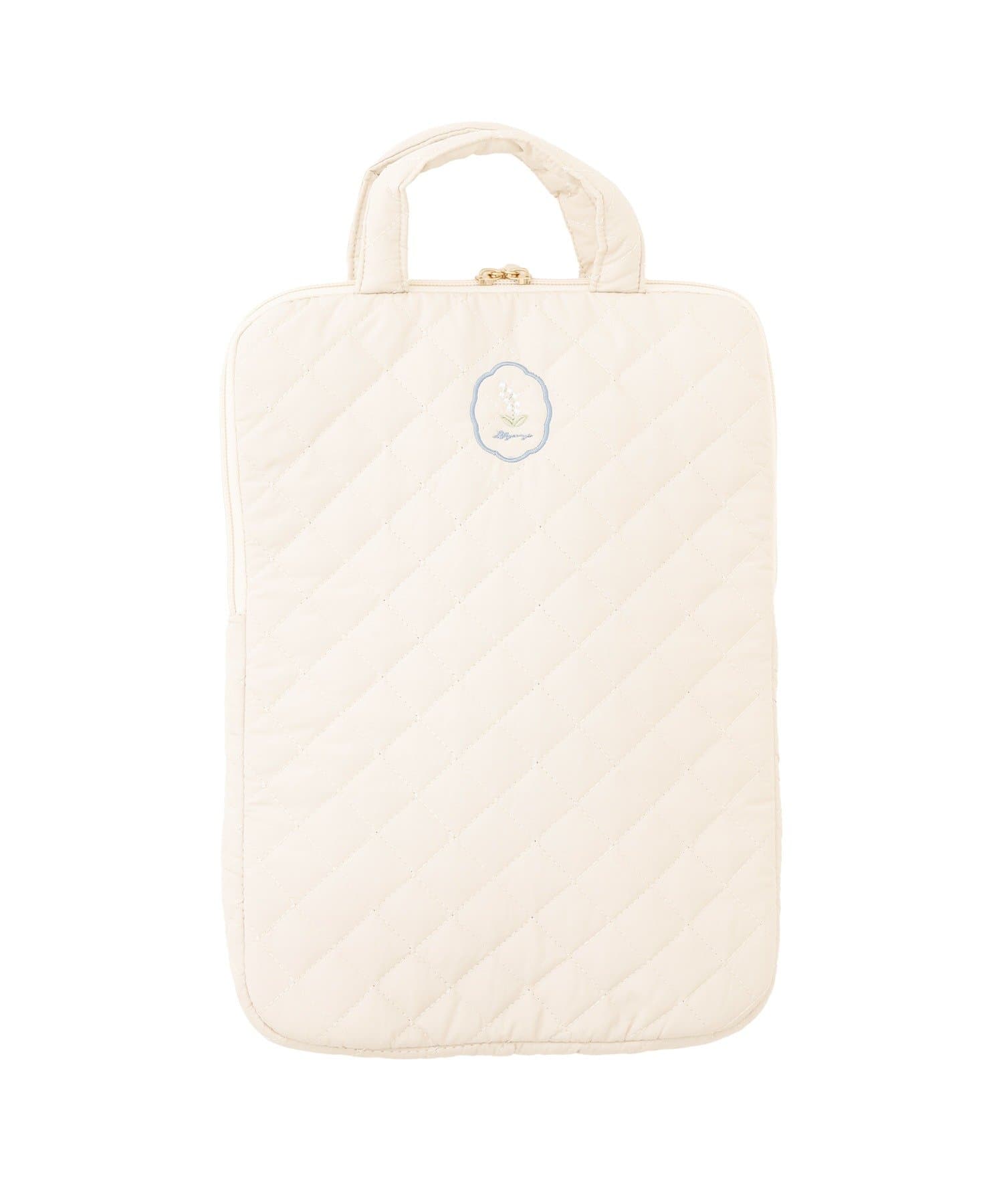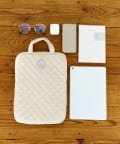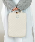 ●左右どちらからもオープン可能で出し入れがスムーズなキルディング生地のタブレットバッグ。