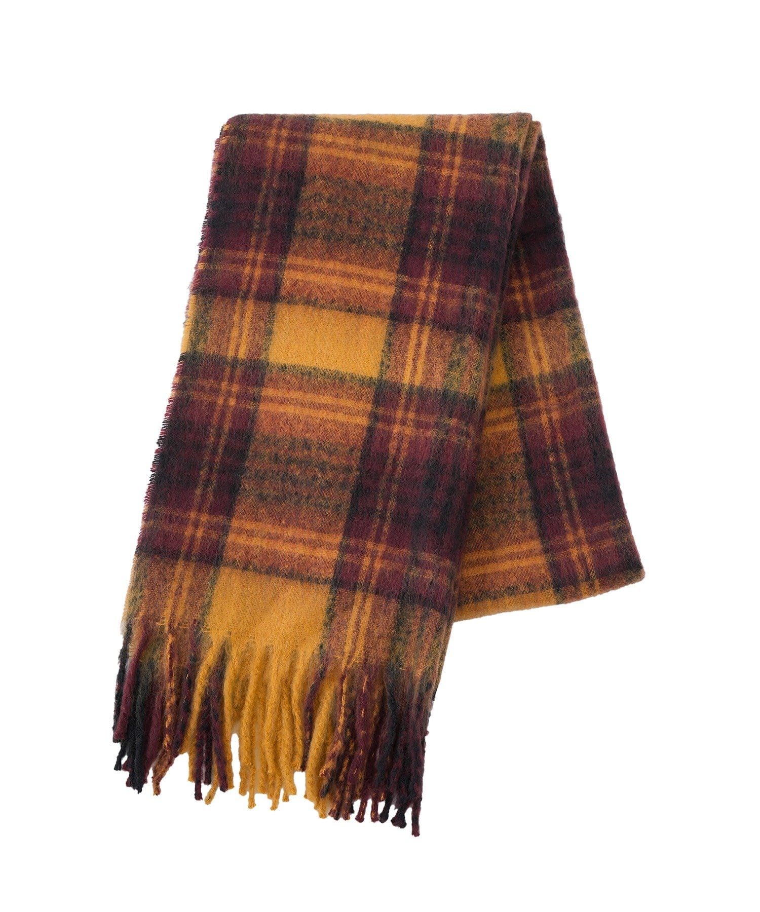 ●クラシカルなチェック柄にフリンジがアクセントになったマフラー。