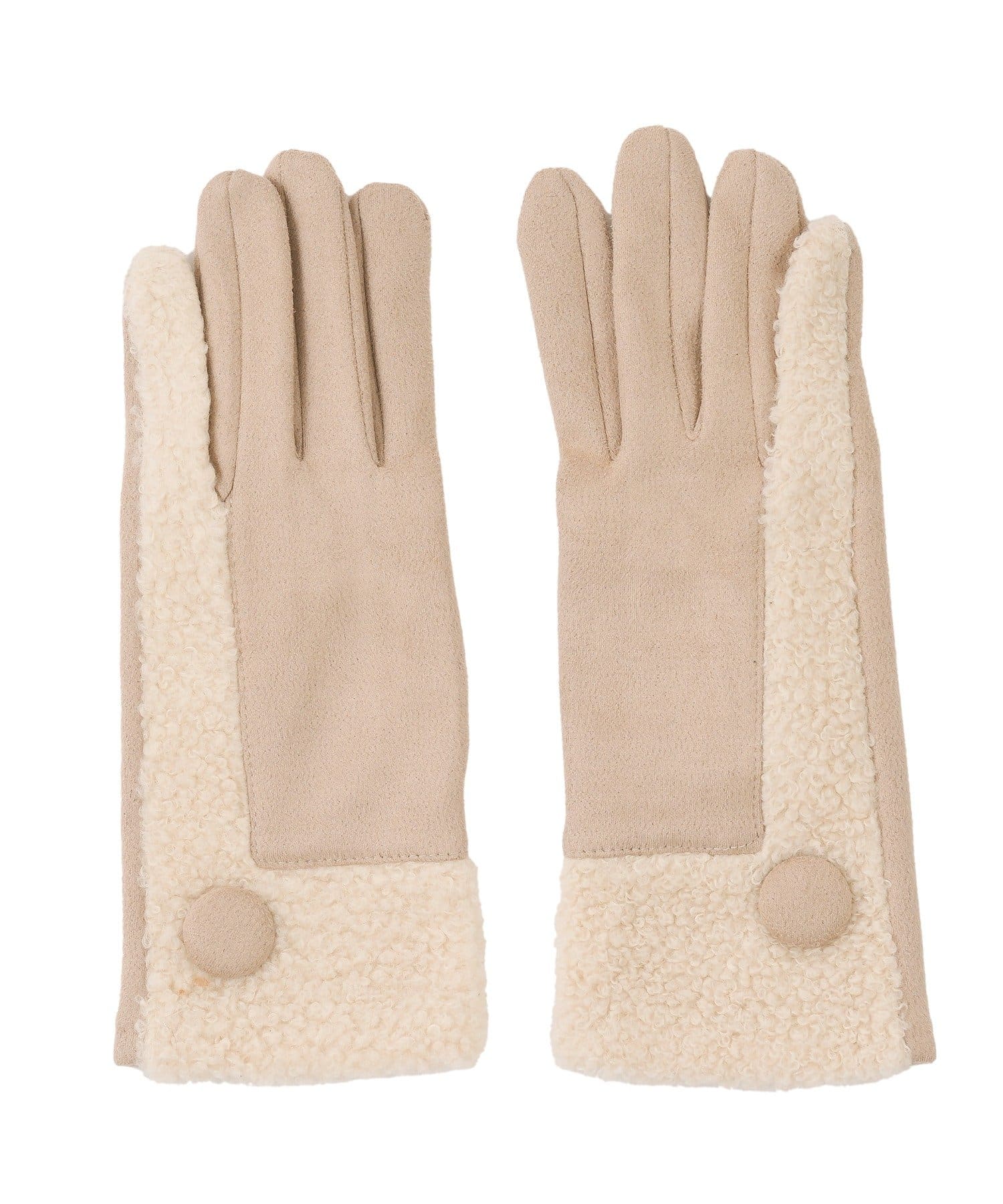 ●ふわふわのプードルボア素材で手元を暖かく包むプードルボアの切り替えグローブ。