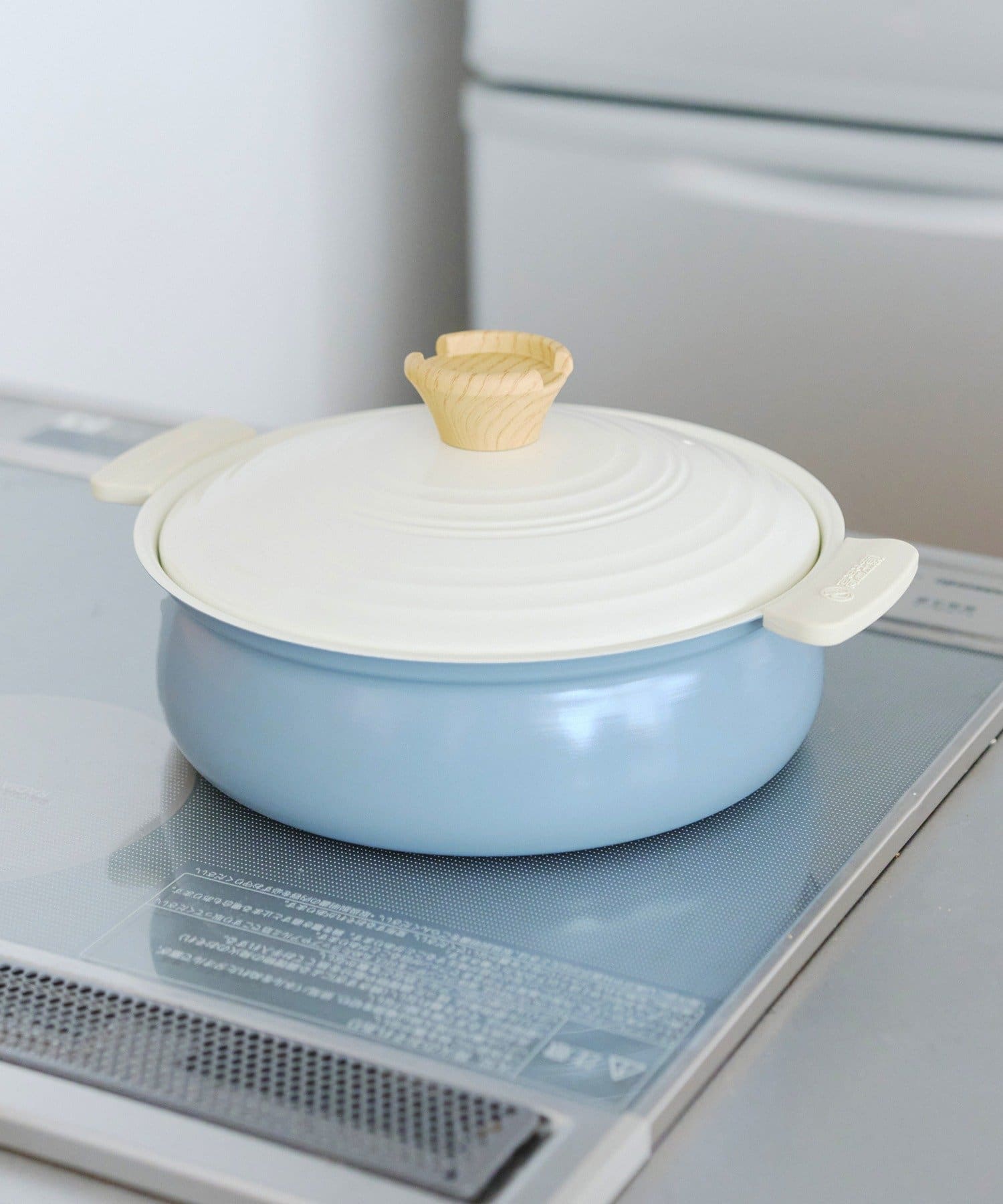 ●優しいくすみカラーのボディに白い蓋が爽やかなIH対応の軽量なべ。