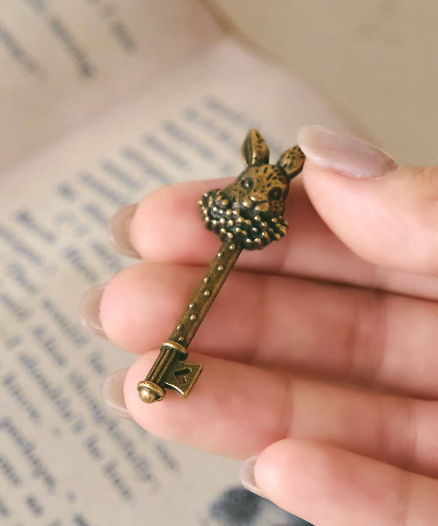 ●アリスに出てくる時計ウサギをモチーフにしたアンティークゴールドのキーオブジェ。