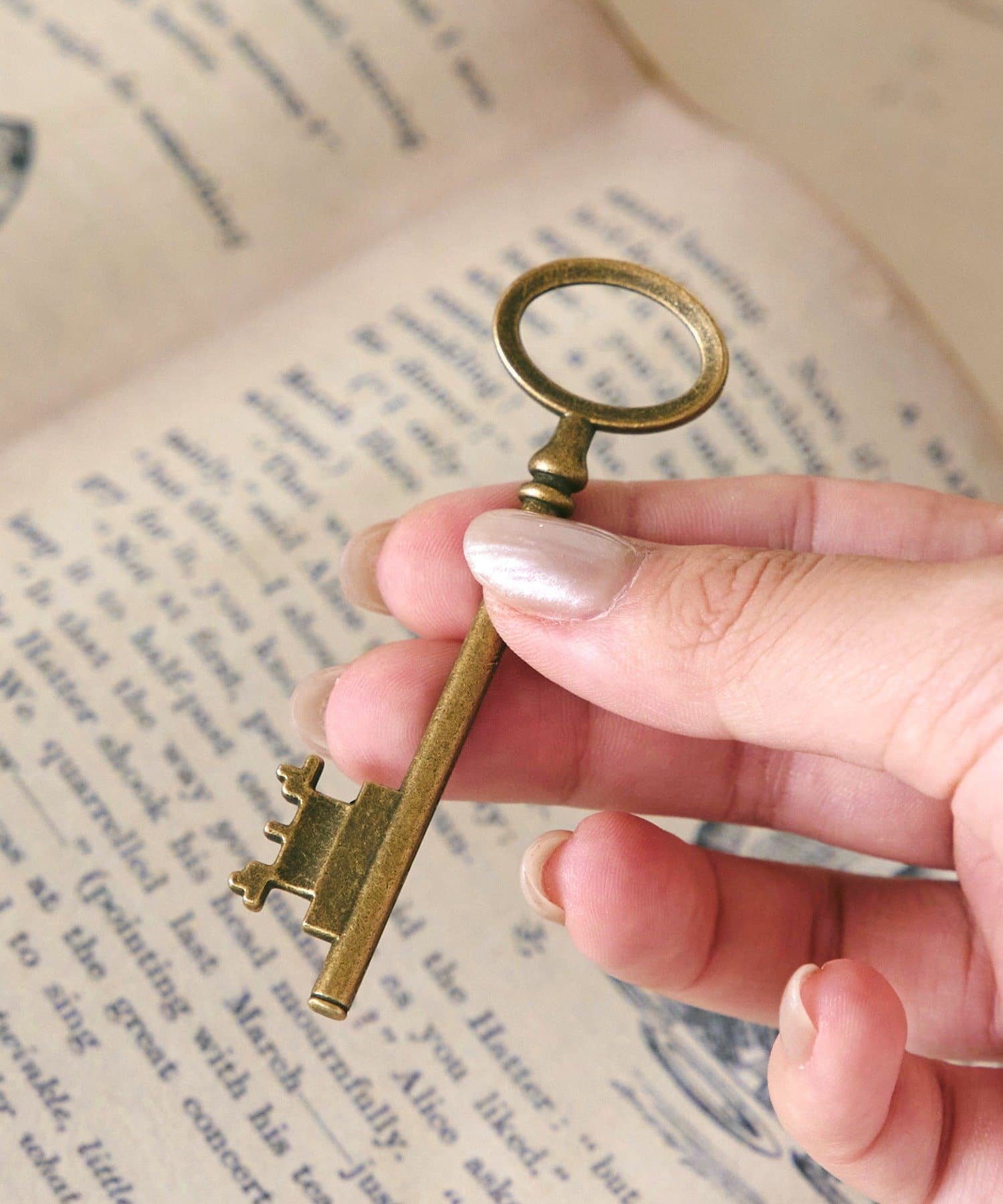 ●アリスの世界観をイメージしたアンティークゴールドのキーオブジェ。