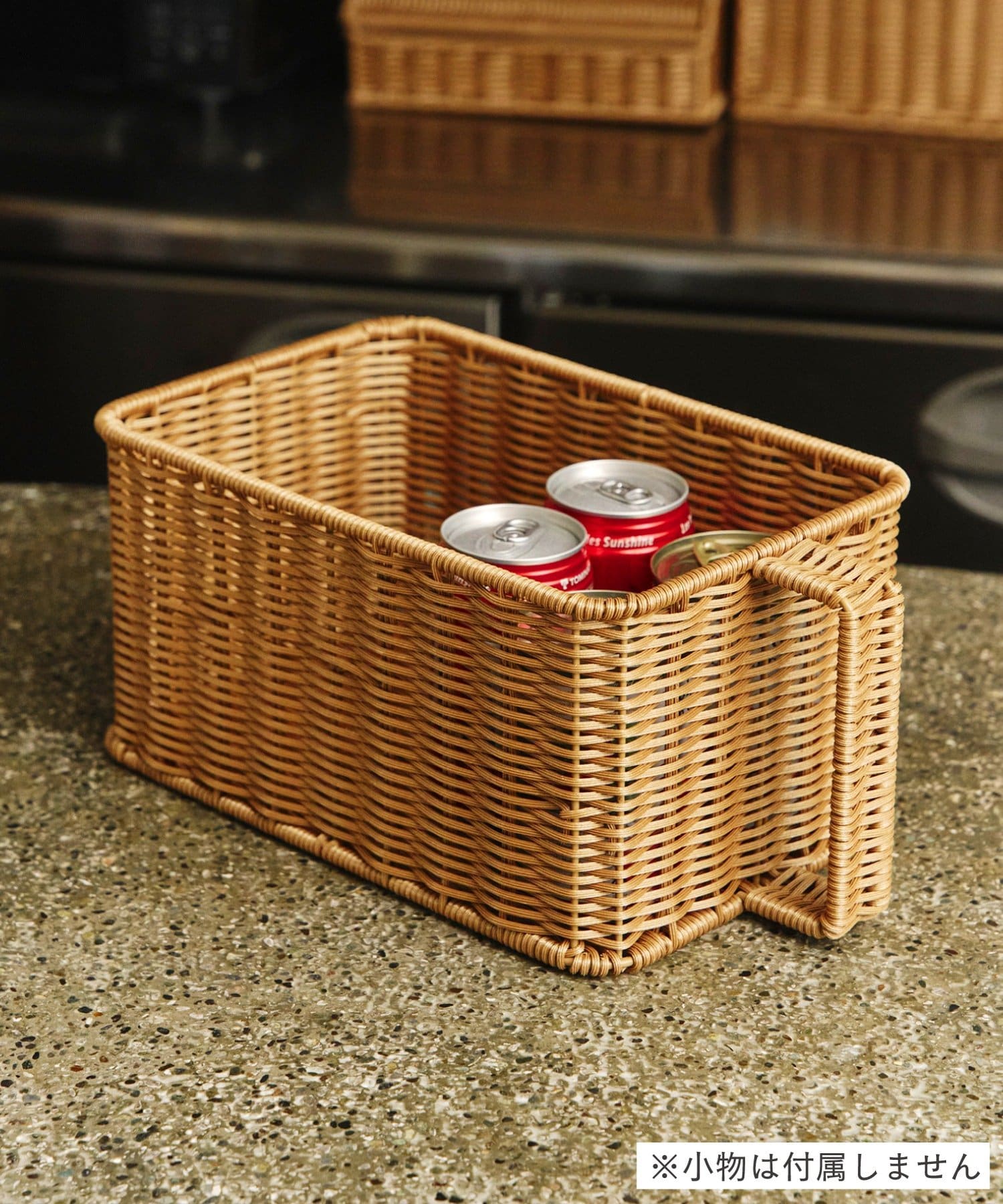 ●PEラタン素材の浅型ハンドルストッカーバスケット。