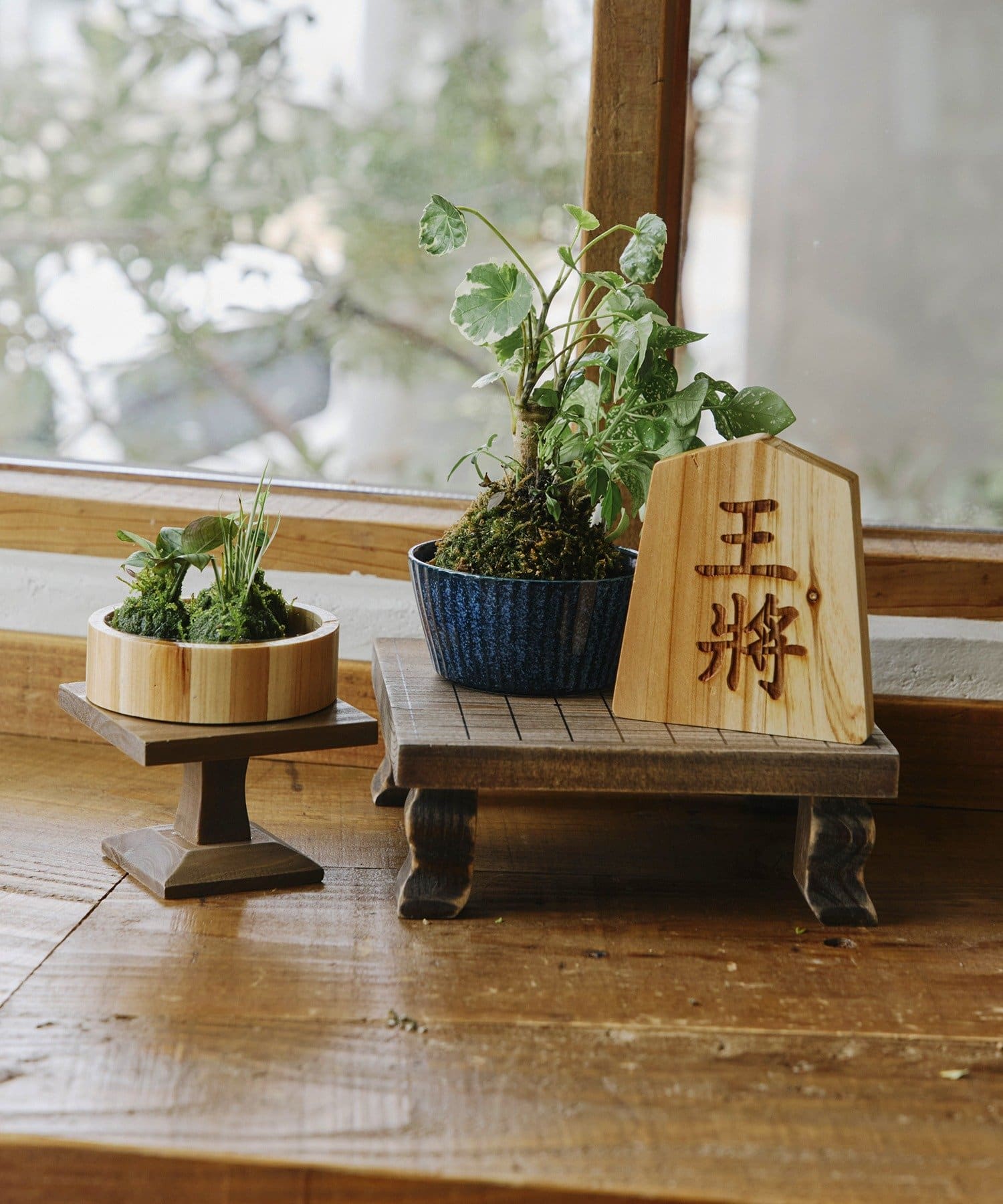 • salut!(サリュ) 将棋盤風スタンド/苔玉と盆栽